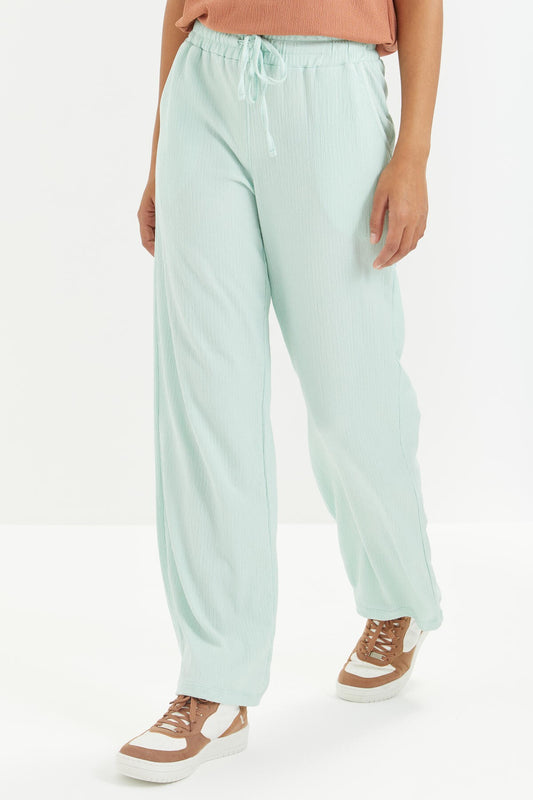 Mint Green Waist-Gathered Laced Classic Hem Crepe Fabric Women's Tracksuit Bottom - 94619