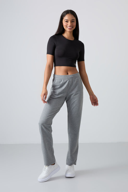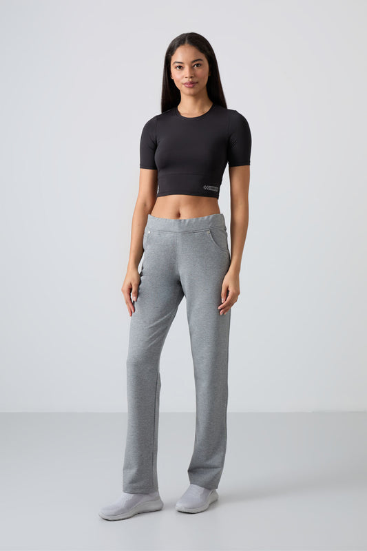 Grey Melange High Waist Comfort Fit Classic Leg Women's Tracksuit Bottom - 94584