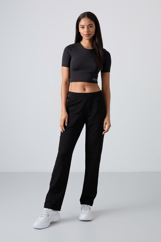 Black High Waist Comfort Fit Classic Leg Women's Tracksuit Bottom - 94584