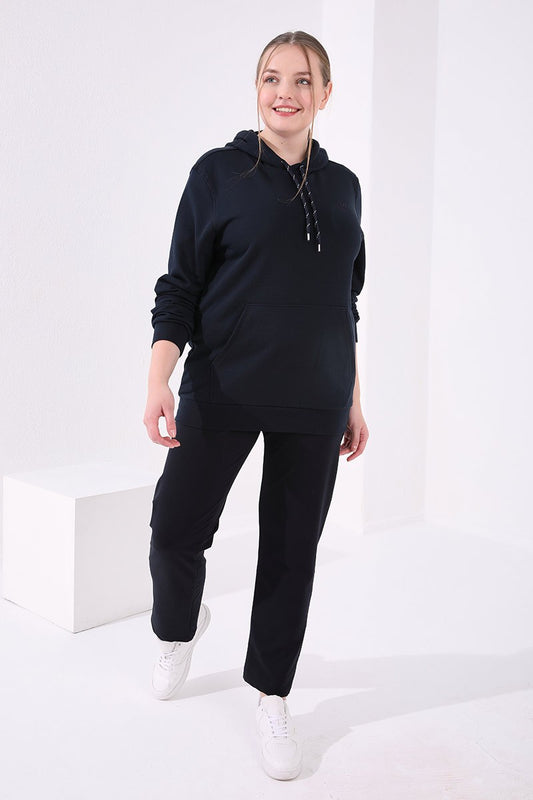 Navy Blue Cuffed Comfort Fit Classic Hem Women's Plus Size Tracksuit Bottom - 94017
