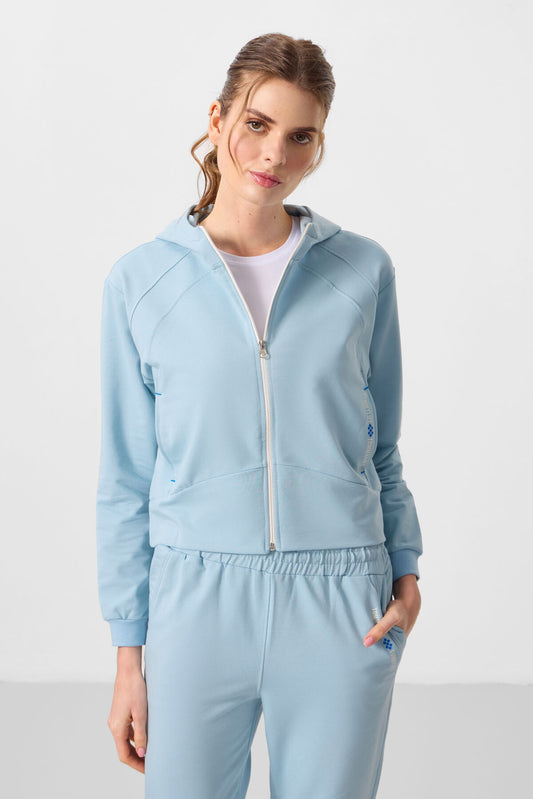 Light Blue Compact Cotton Thick Smooth Textured Stand Collar Oversize Fit Women's Tracksuit Set - 95340