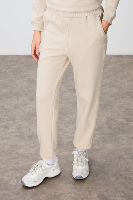 Stone Compact Cotton Thick Smooth Textured O Collar Oversize Fit Women's Tracksuit Set - 95341