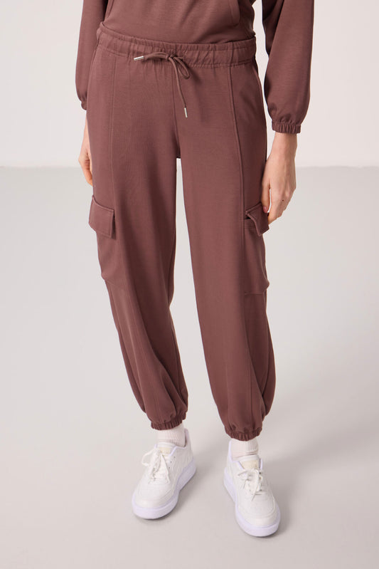 Brown Soft Textured Stand Collar Hidden Zipper Oversize Women's Tracksuit Set - 95351