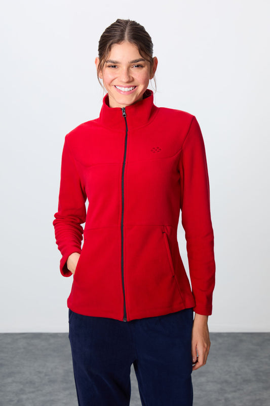 Red-Navy Thick Soft Textured Stand Collar Oversize Embroidered Fleece Women's Tracksuit Set -95339