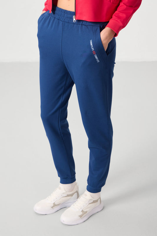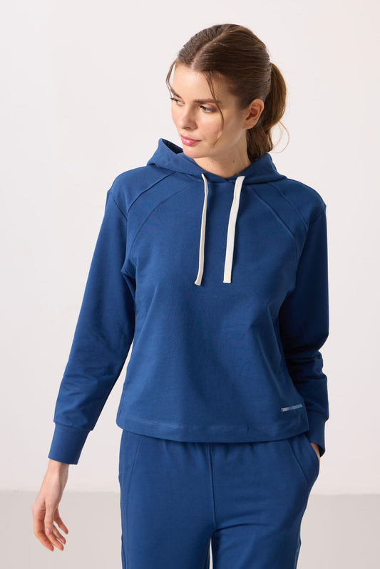 Indigo Compact Cotton Thick Smooth Textured O Collar Oversize Fit Women's Tracksuit Set - 95341