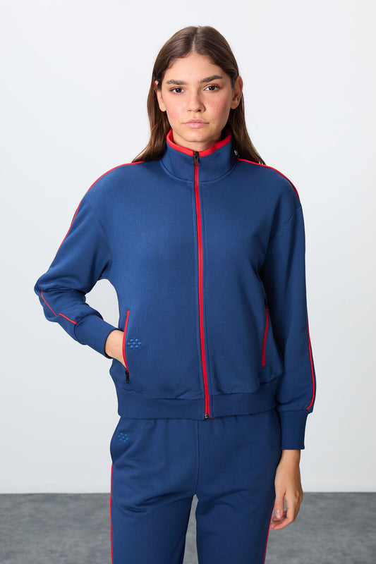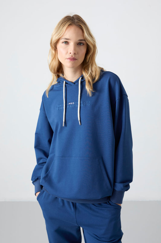 Indigo Hooded Hidden Pocket Detailed Standard Fit Women's Tracksuit Set - 95306