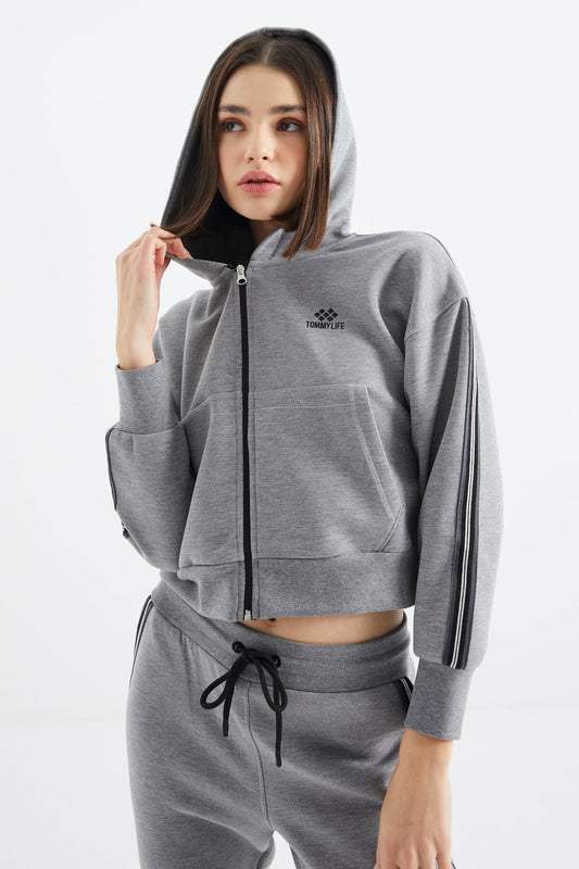 Grey Melange Zippered Women's Tracksuit Set - 95326