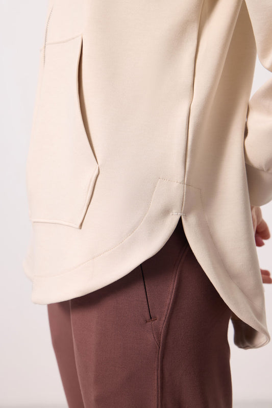 Soft Textured Beige O Collar Oversize Women's Tunic Sweatshirt - 97303