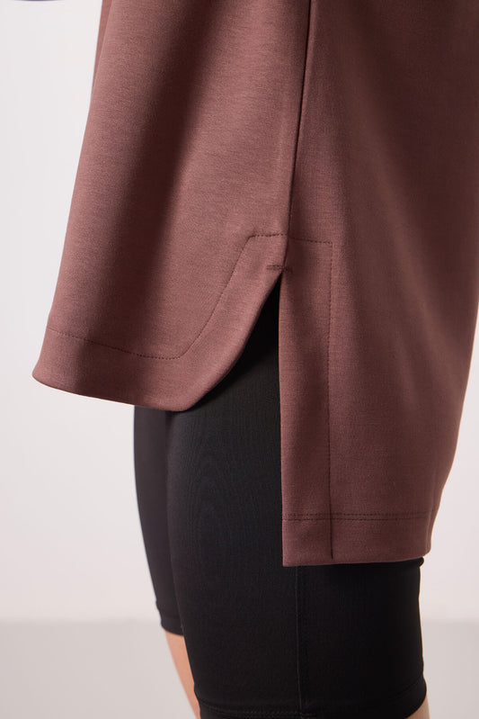 Brown Soft Textured O Collar Comfort Fit Women's Tunic Sweatshirt - 97305