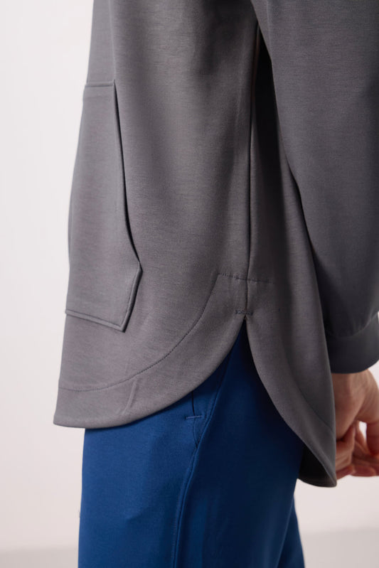 Dark Grey Soft Textured O Collar Comfort Fit Women's Tunic Sweatshirt - 97305