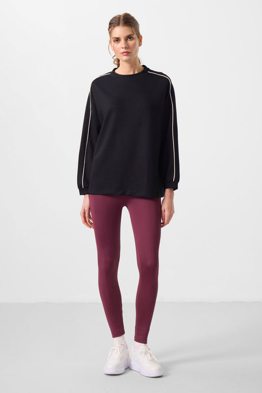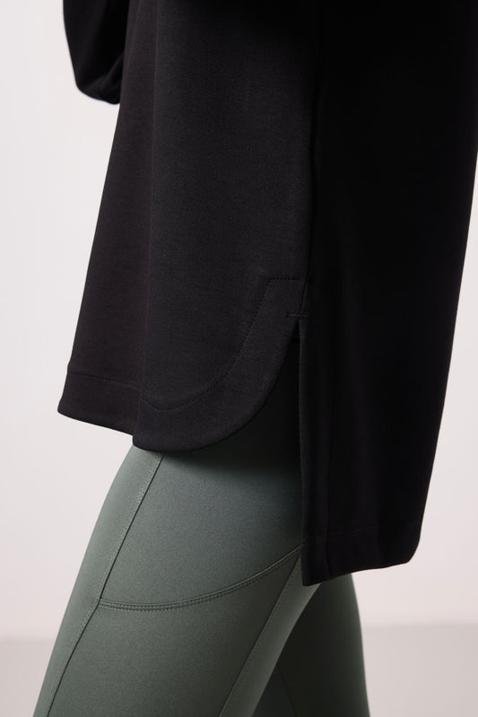 Black Soft Textured O Collar Comfort Fit Women's Tunic Sweatshirt - 97305