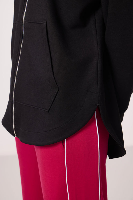 Black Soft Textured Oversize Women's Hooded Tunic Sweatshirt - 97302