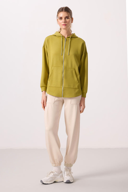 Green Soft Textured O Collar Oversize Women's Tunic Sweatshirt - 97303
