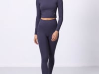 Anthracite High Waist Long Sleeve Slim Fit Crop Top Women's Tights Set - 95286