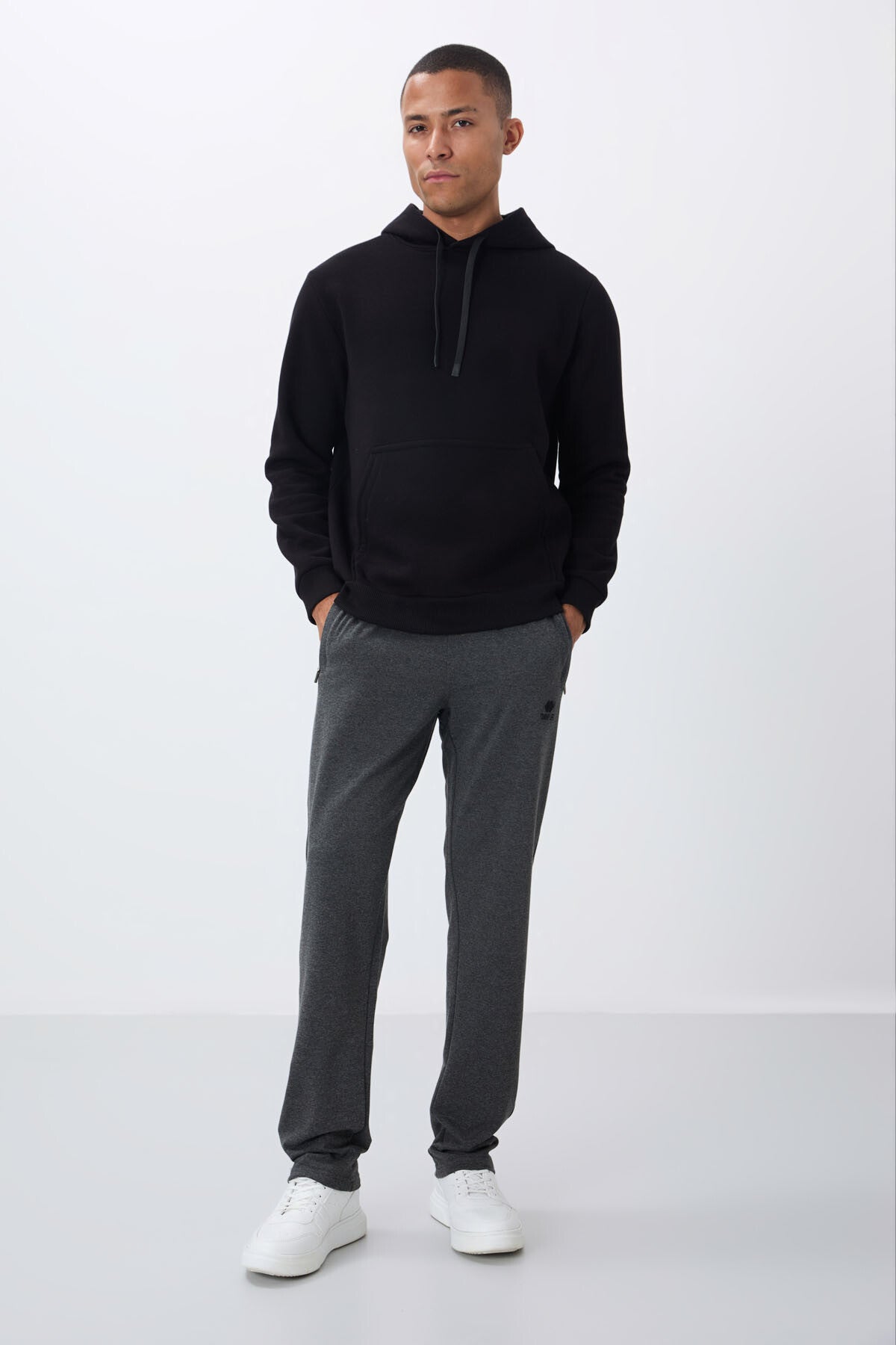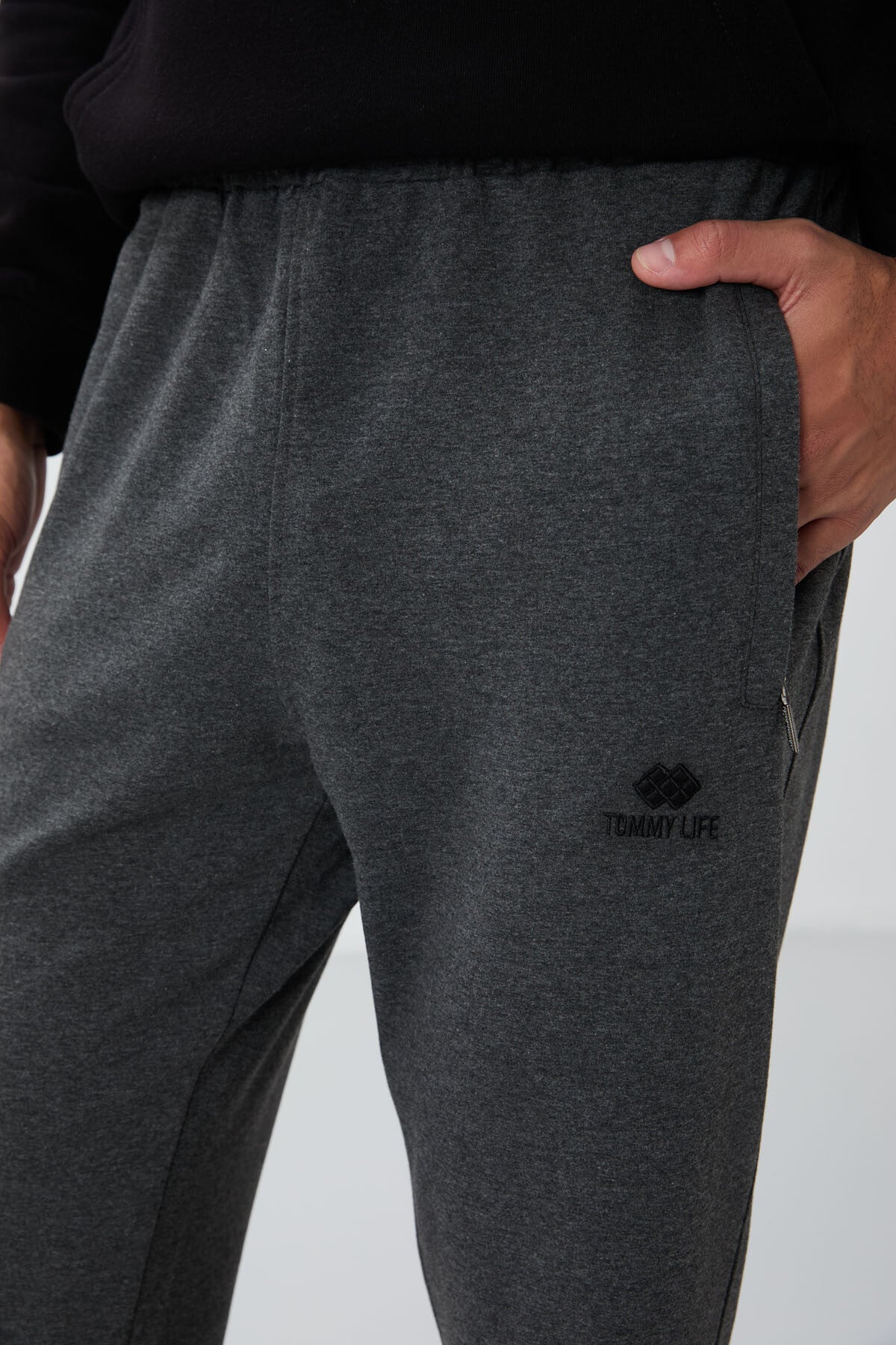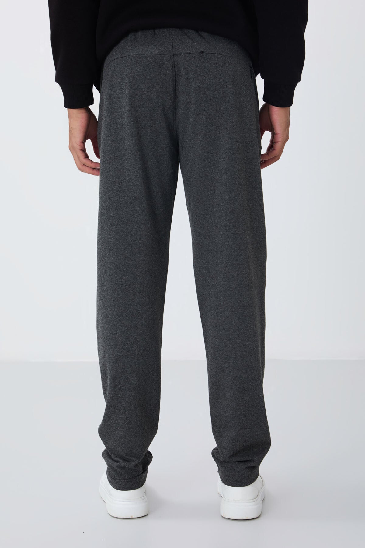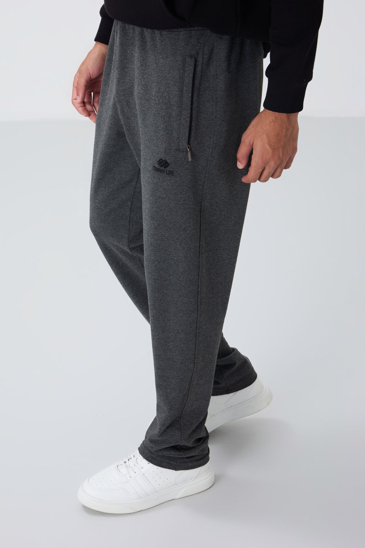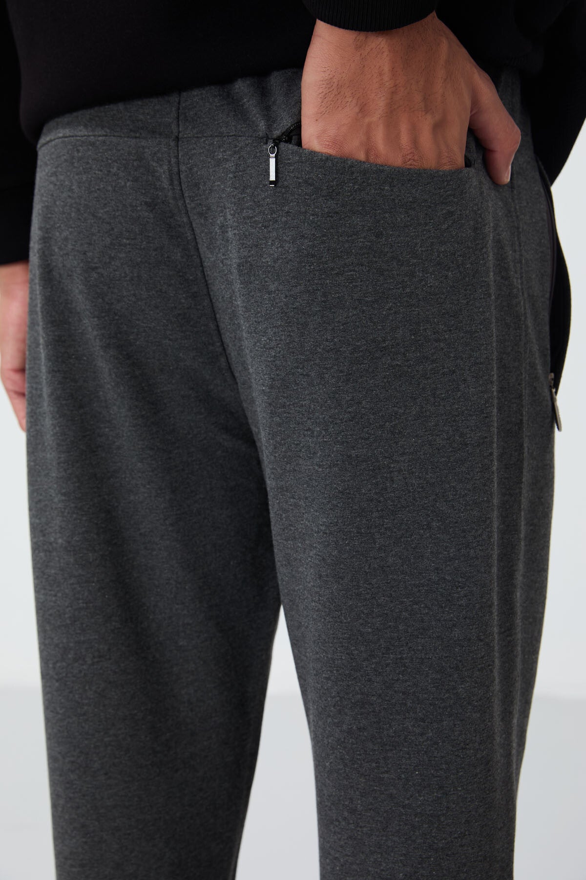 Anthracite Melange Zippered Straight Leg Classic Hem Men's Tracksuit Bottom - 84669