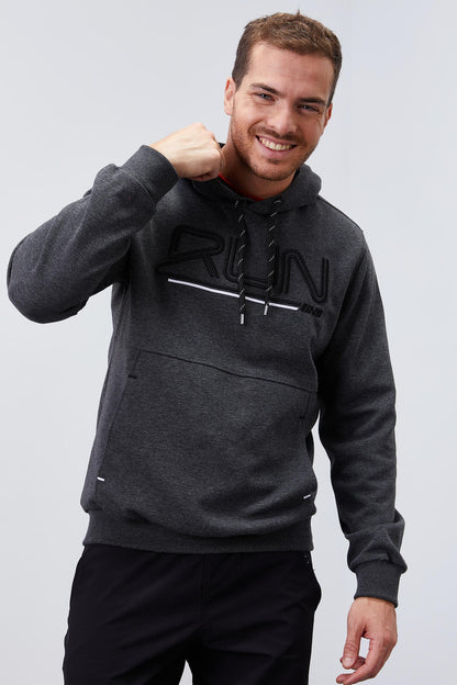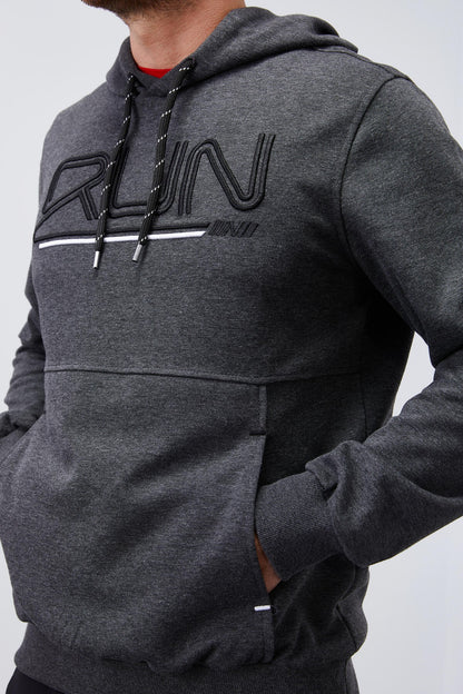 Anthracite Melanj Yarn Embroidered Standard Mold Hooded Men's Sweatshirt - 87887