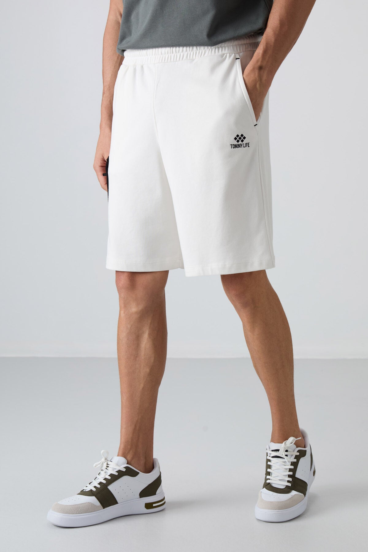 Beige Cotton Thick Soft Textured Comfort Fit Printed Men's Shorts - 81266