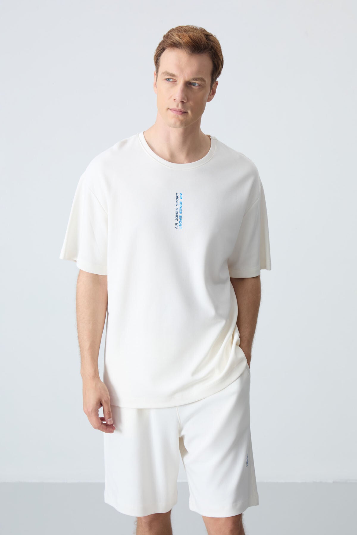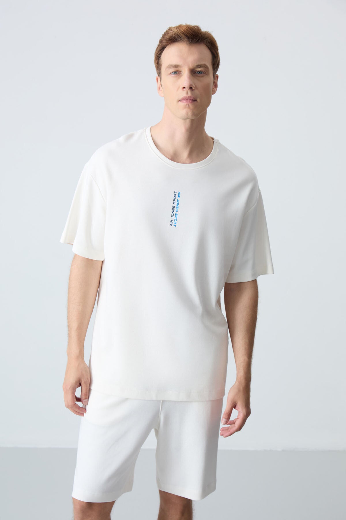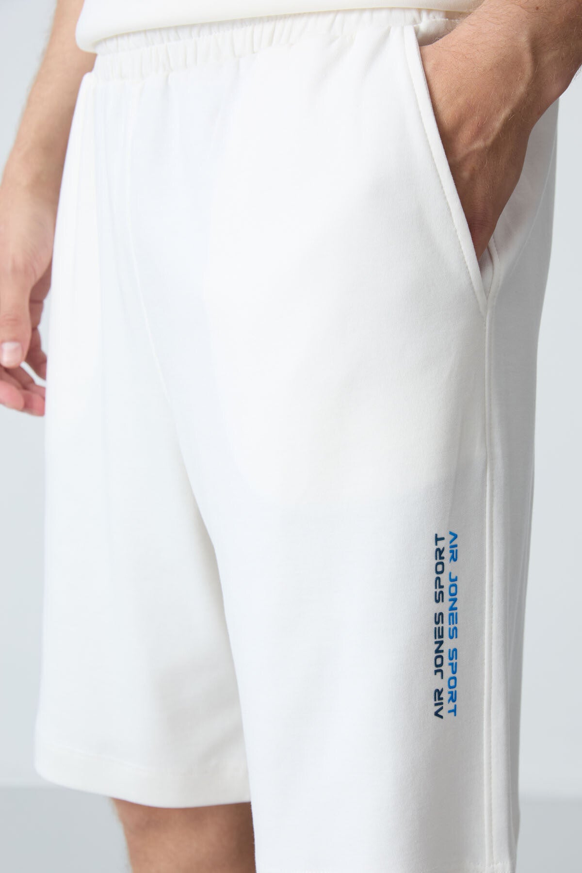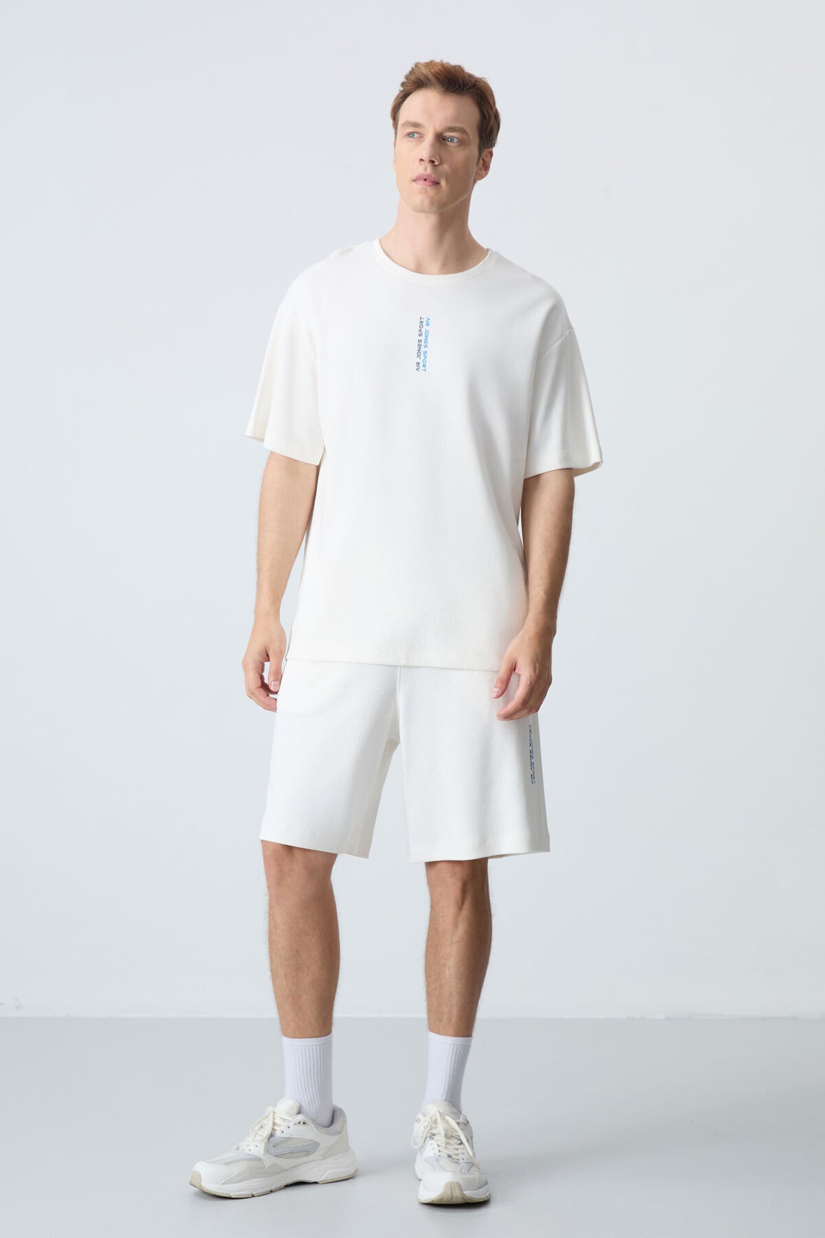 Beige Cotton Thick Soft Textured Oversize Fit Basic Men's Shorts Set - 85258