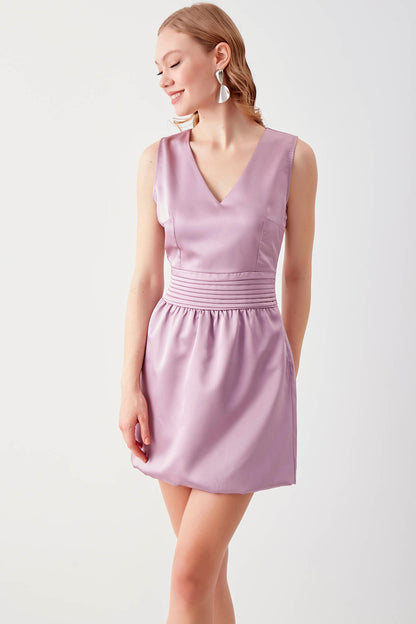 WAIST DETAILED V COLLAR DRESS