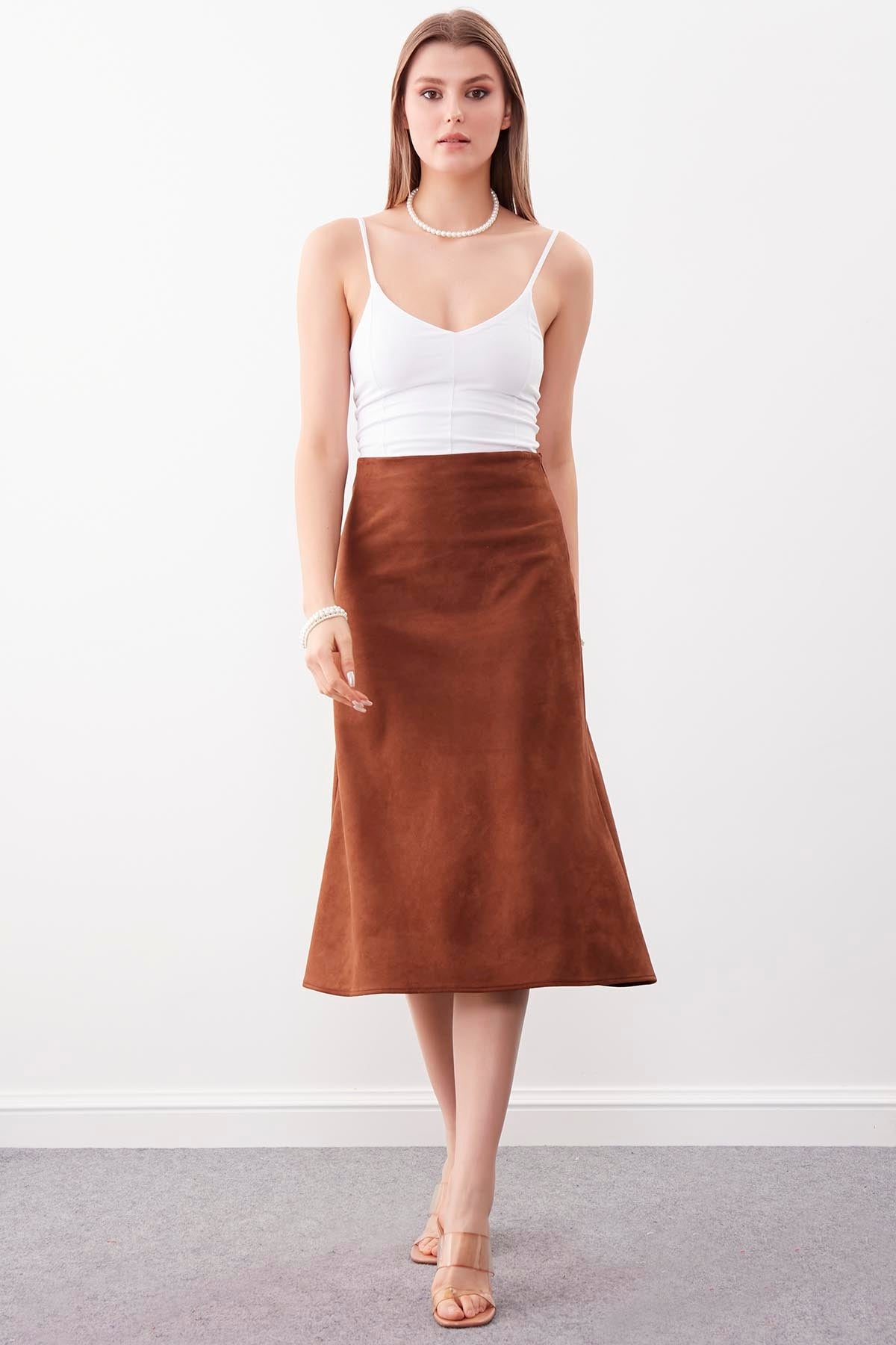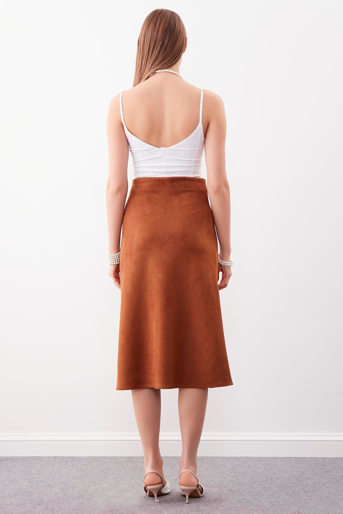 WAIST-CUTTING SUEDE CLOTH SKIRT