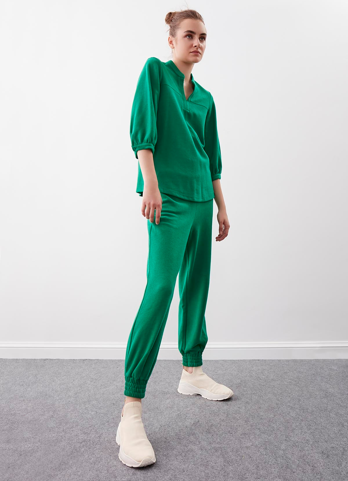KNITTED TROUSERS WITH ELASTANE WAIST AND CUFFS