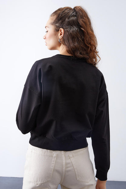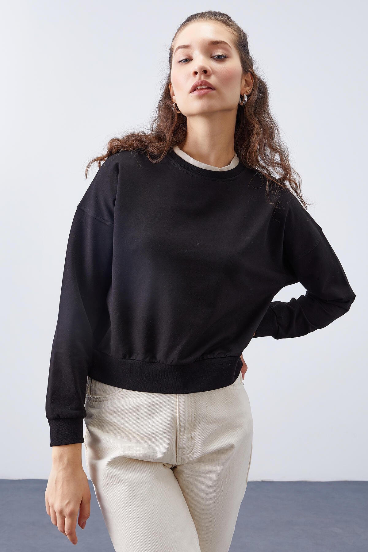 Black Basic Comfort Fit O Neck Women's Sweatshirt - 97114