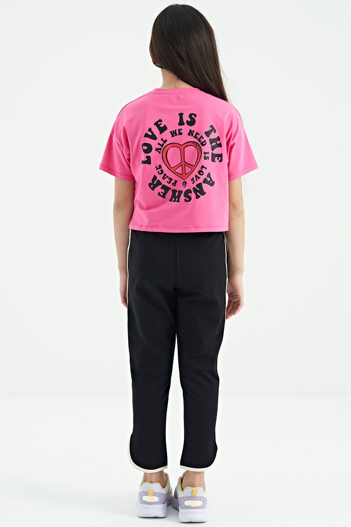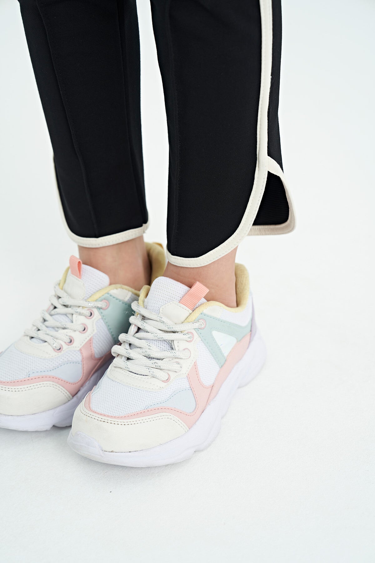 Black Biye Detailed Laced Front Panel Wide-Legged Girls' Tracksuit Bottom - 75124