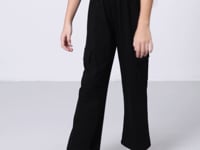 Black Cargo Pocket Front Seam Detailed Wide Leg Girls' Tracksuit Bottom - 75143