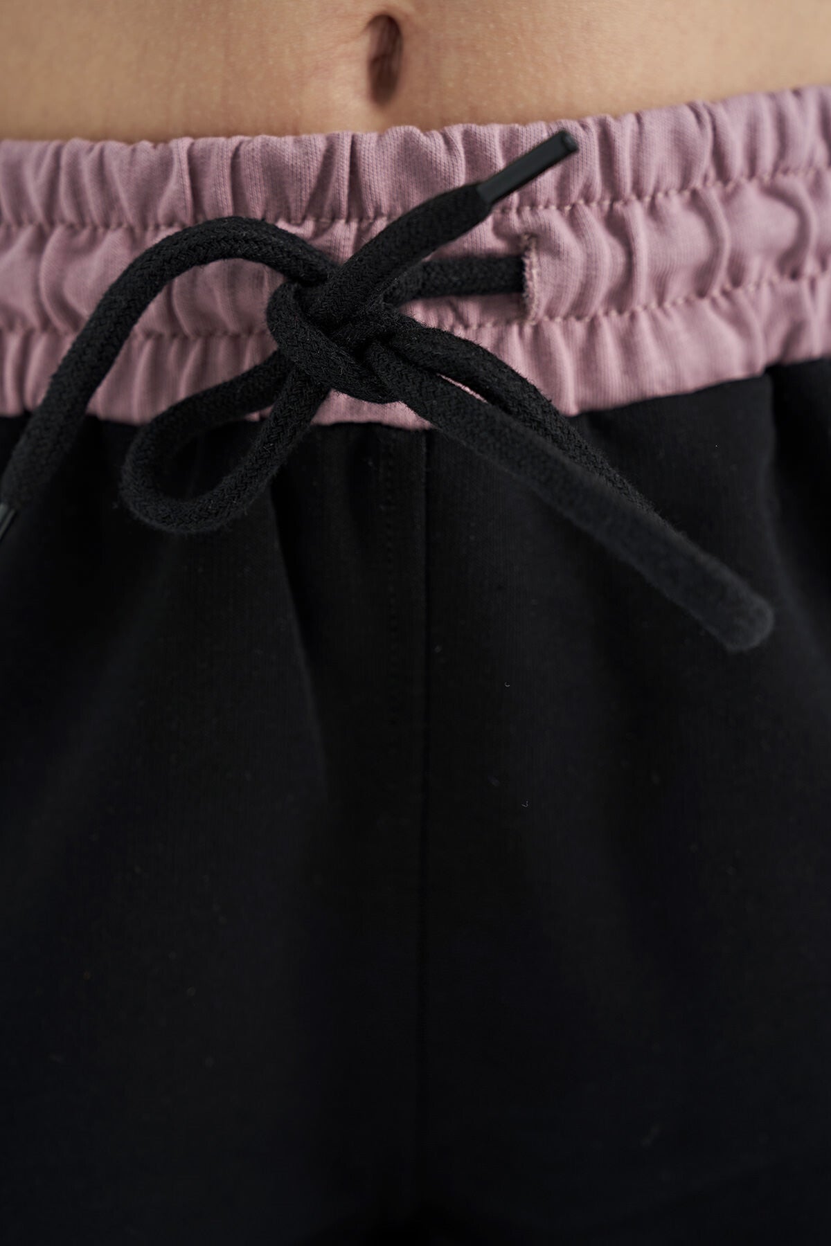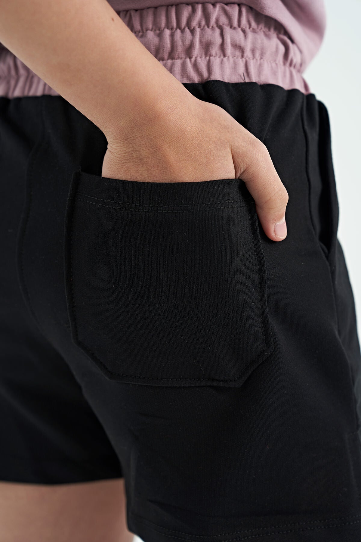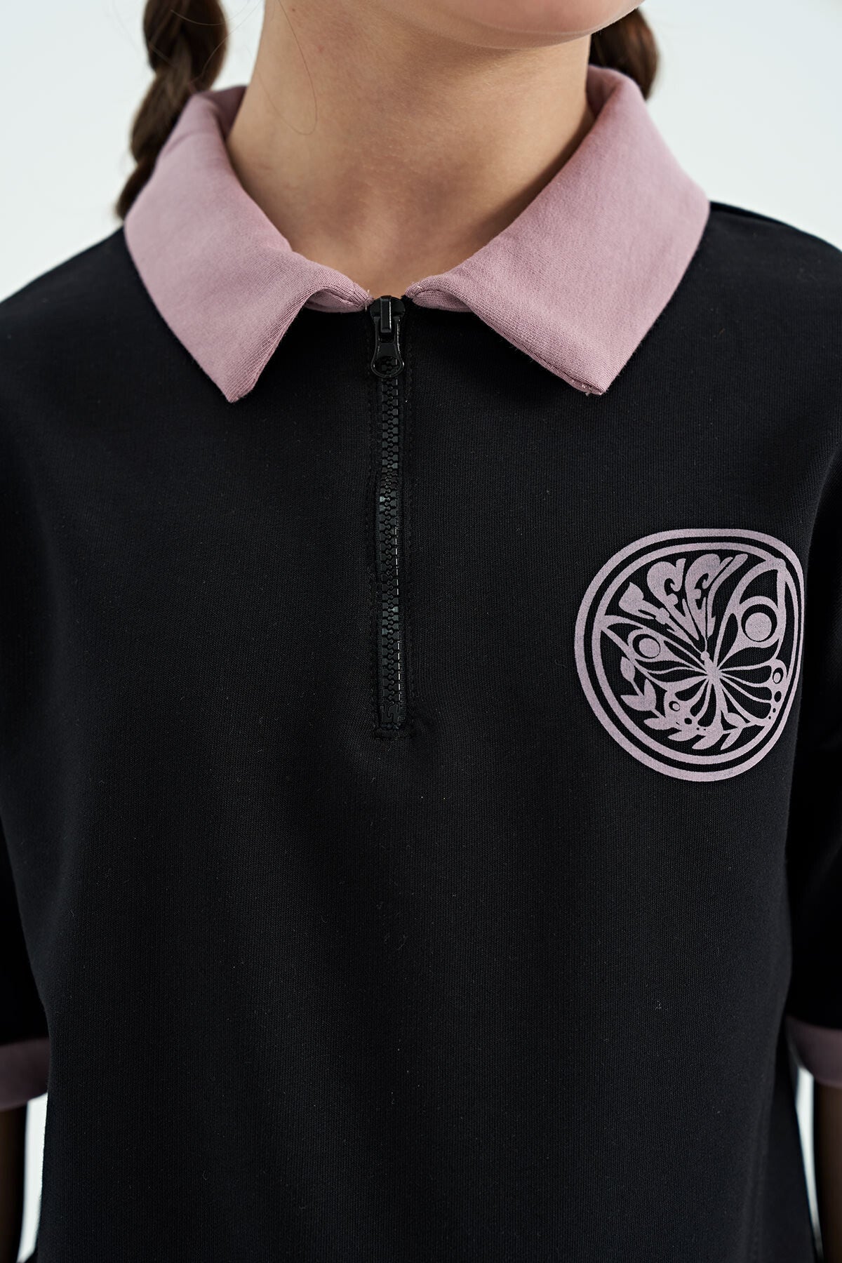 Black Collar Short Sleeve Comfort Fit Girls' Shorts Set - 75131