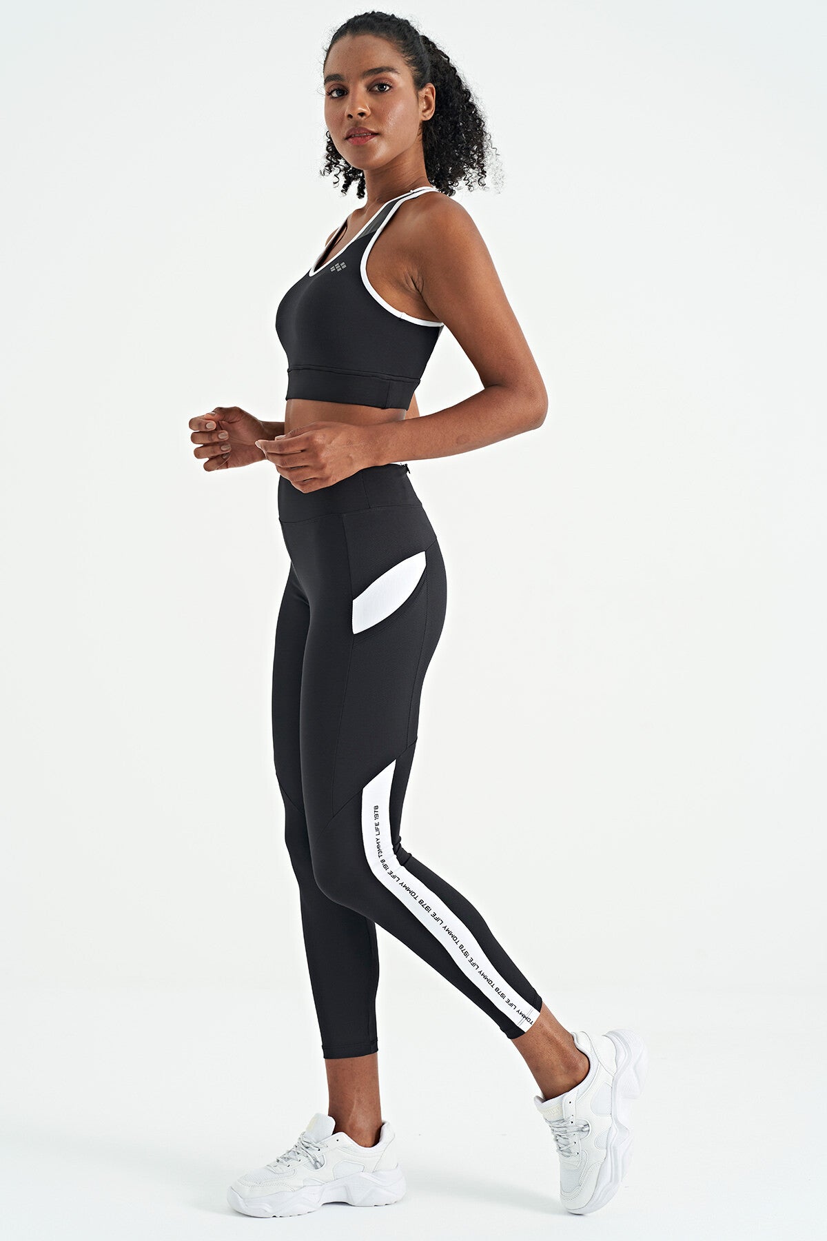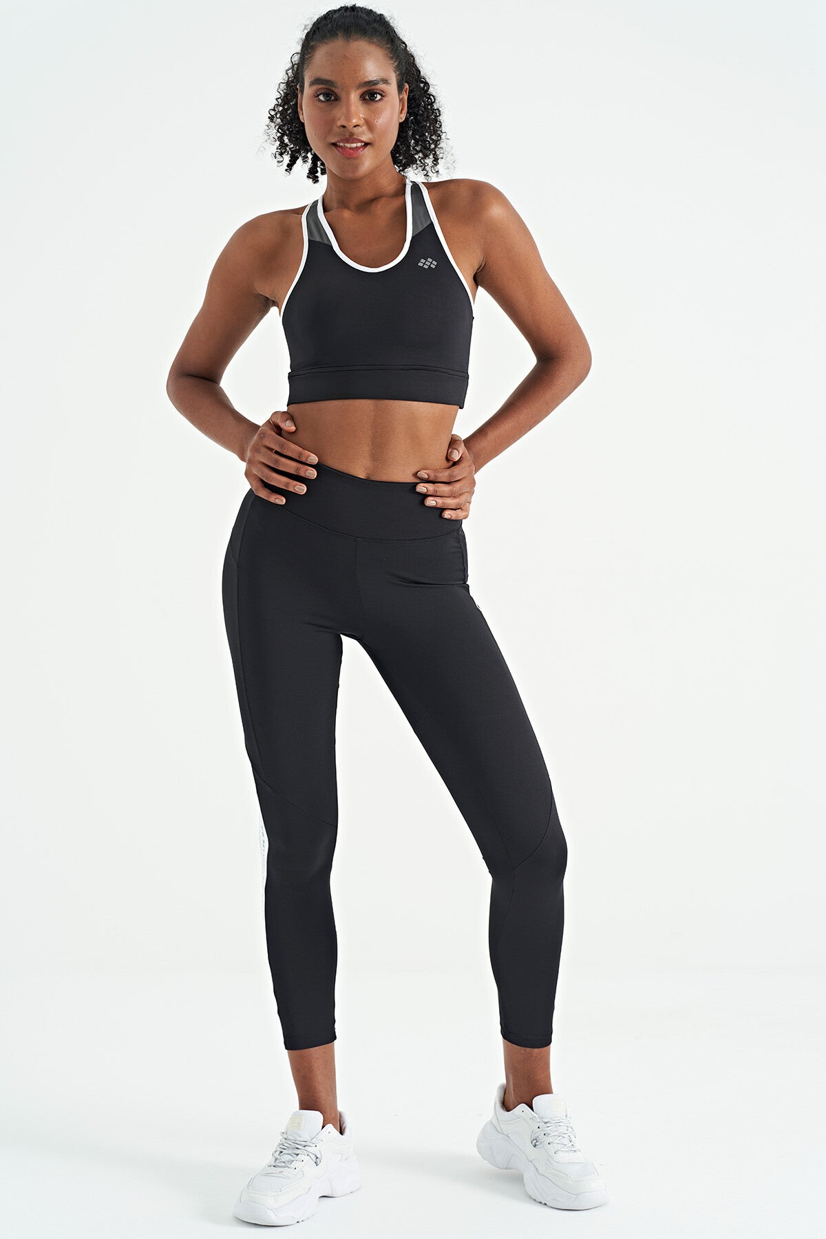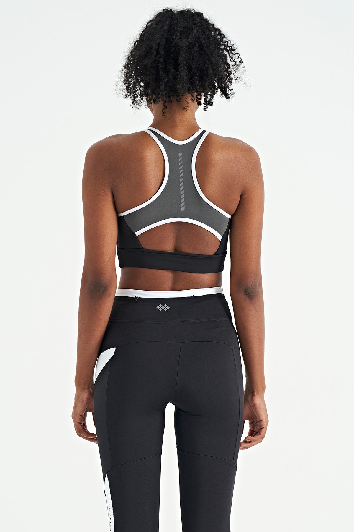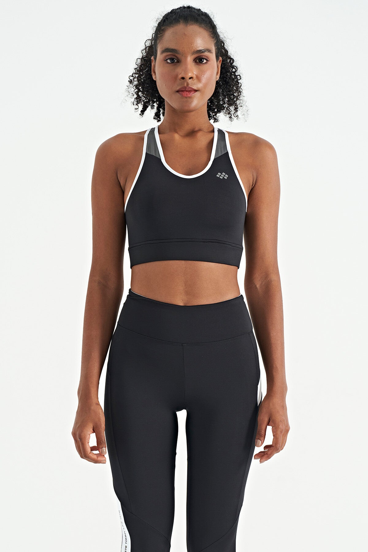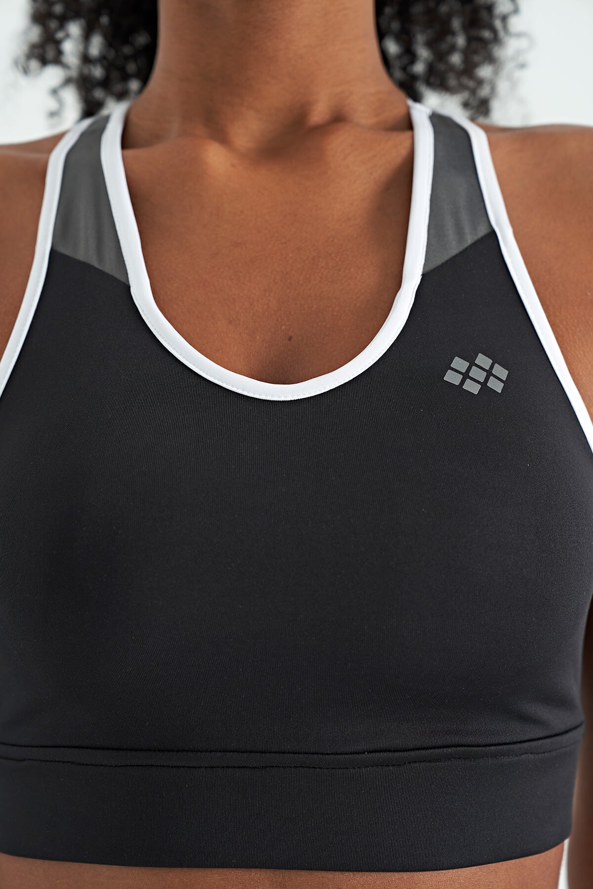 Black Color Block Back Print Detailed Slim Fit Women's Bustier - 97253