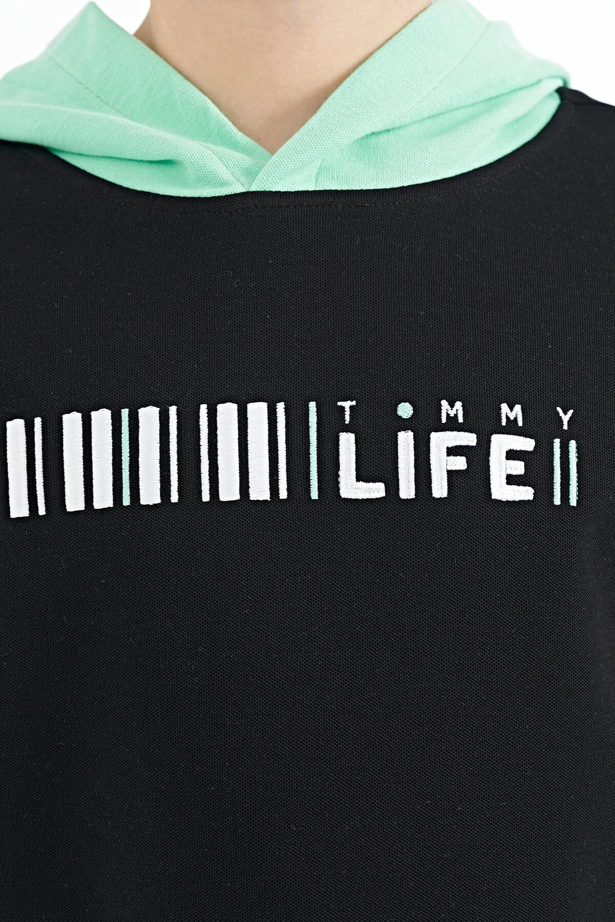 Black Color Block Hooded Kangaroo Pocket Oversize Boys T-Shirt - 11148