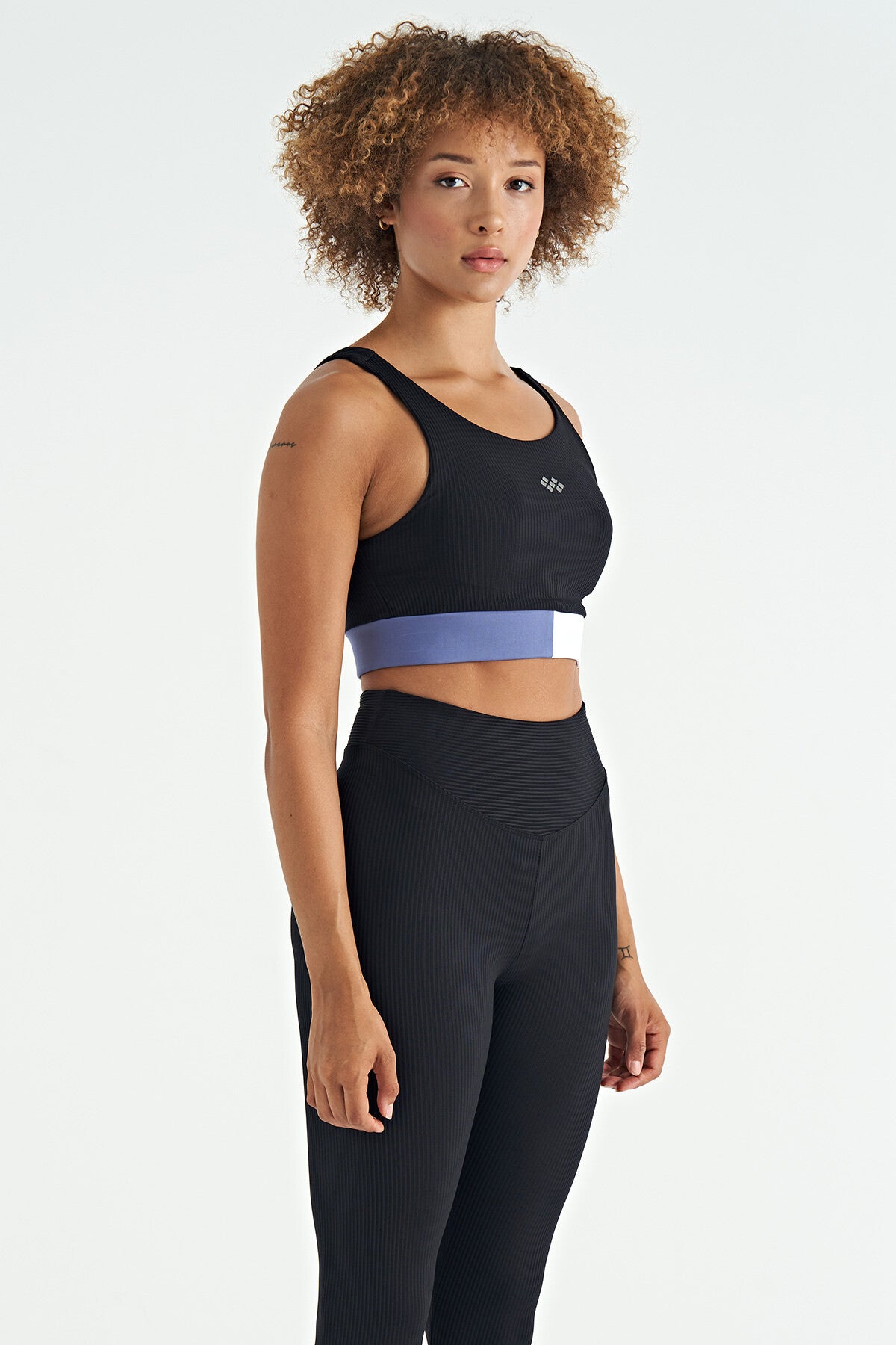 Black Color Block Logo Printed Narrow Fit Striped Women's Bustier - 97275