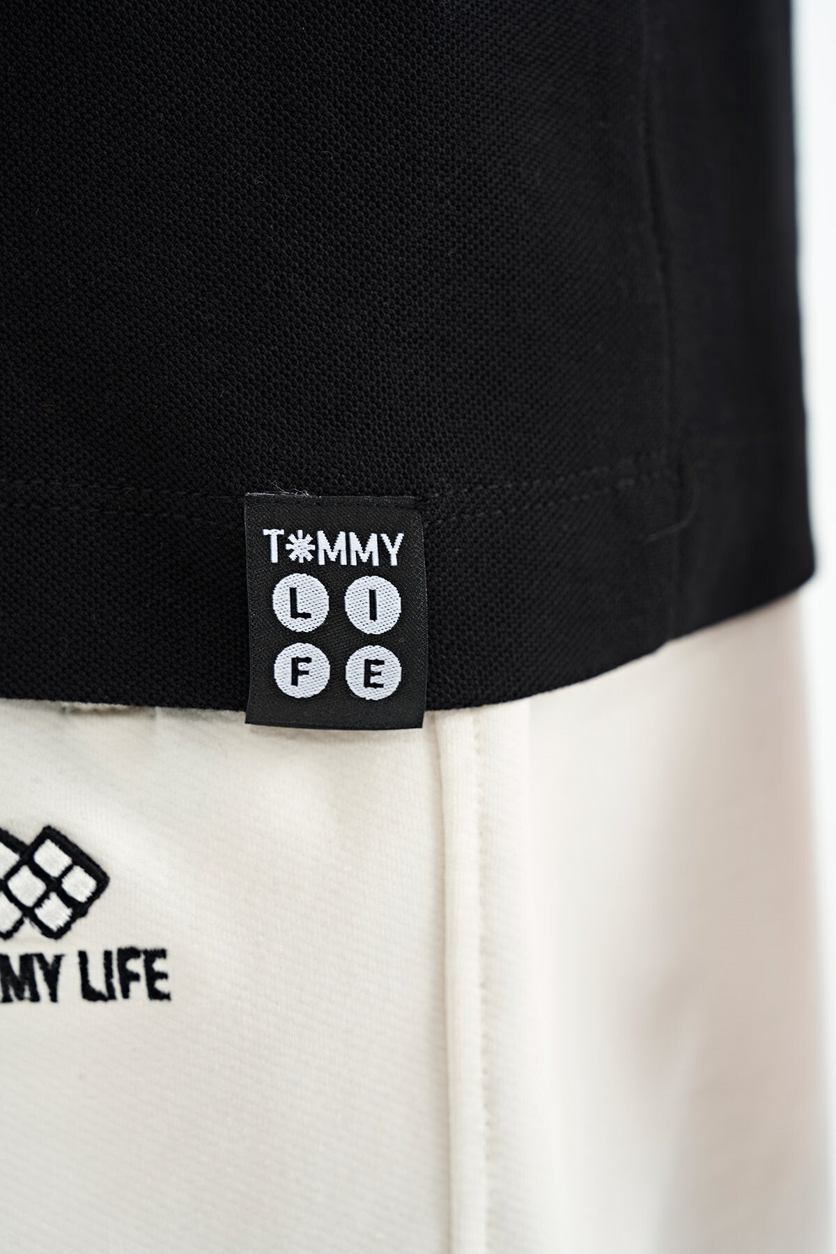 Black Color Gradient Embroidered Detailed Standard Pattern Polo Collar Boys T-Shirt - 11110
