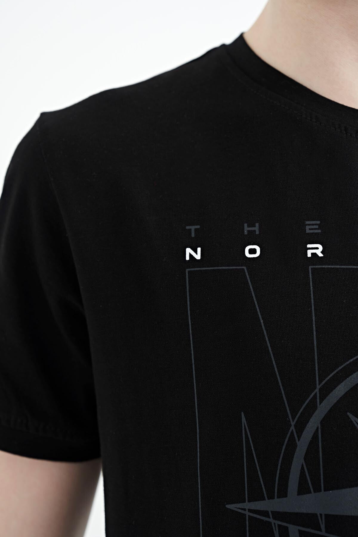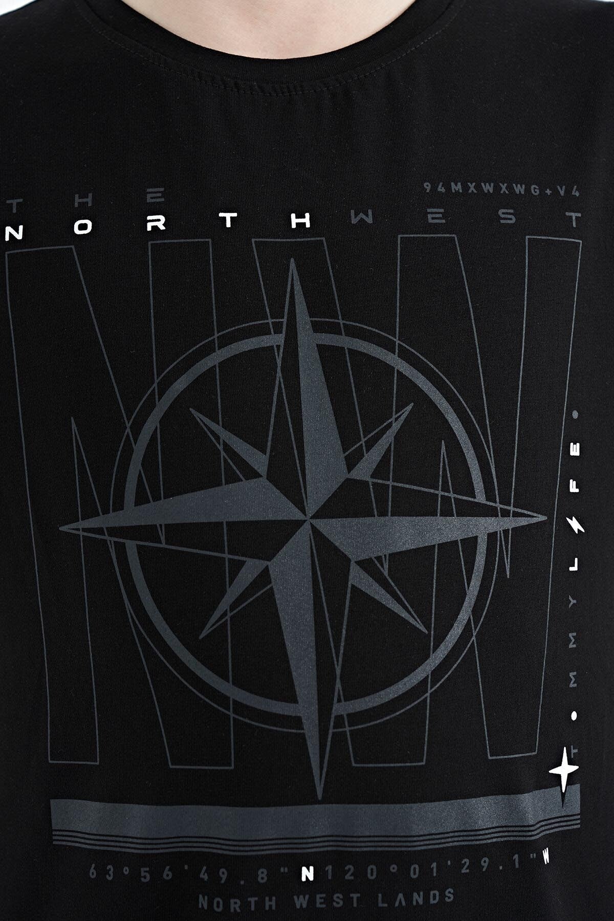 Black Compass Printed Standard Fit O Collar Boys T-Shirt - 11106