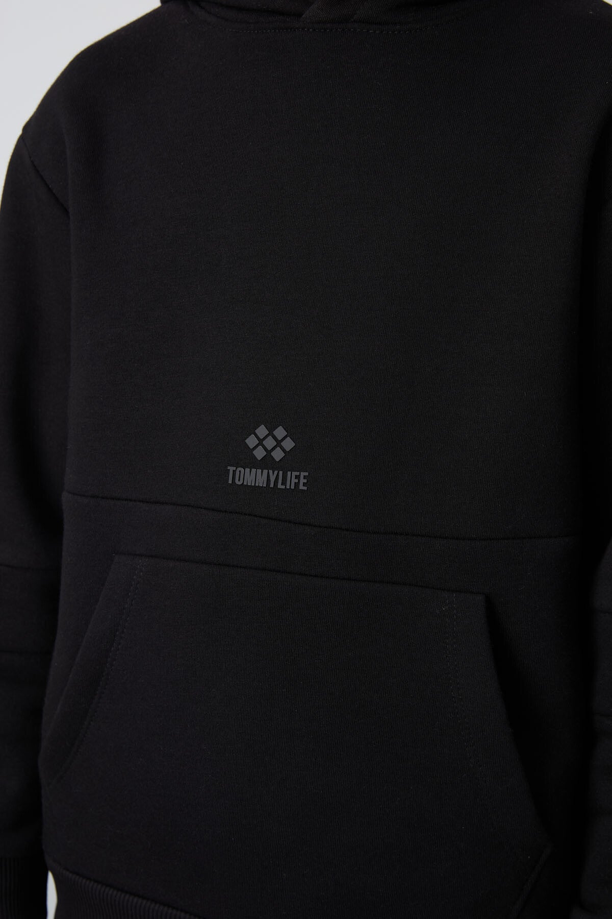 Black Cotton Thick Fleece-Lined Soft Textured Standard Fit Embroidered Boys' Tracksuit Set - 11255