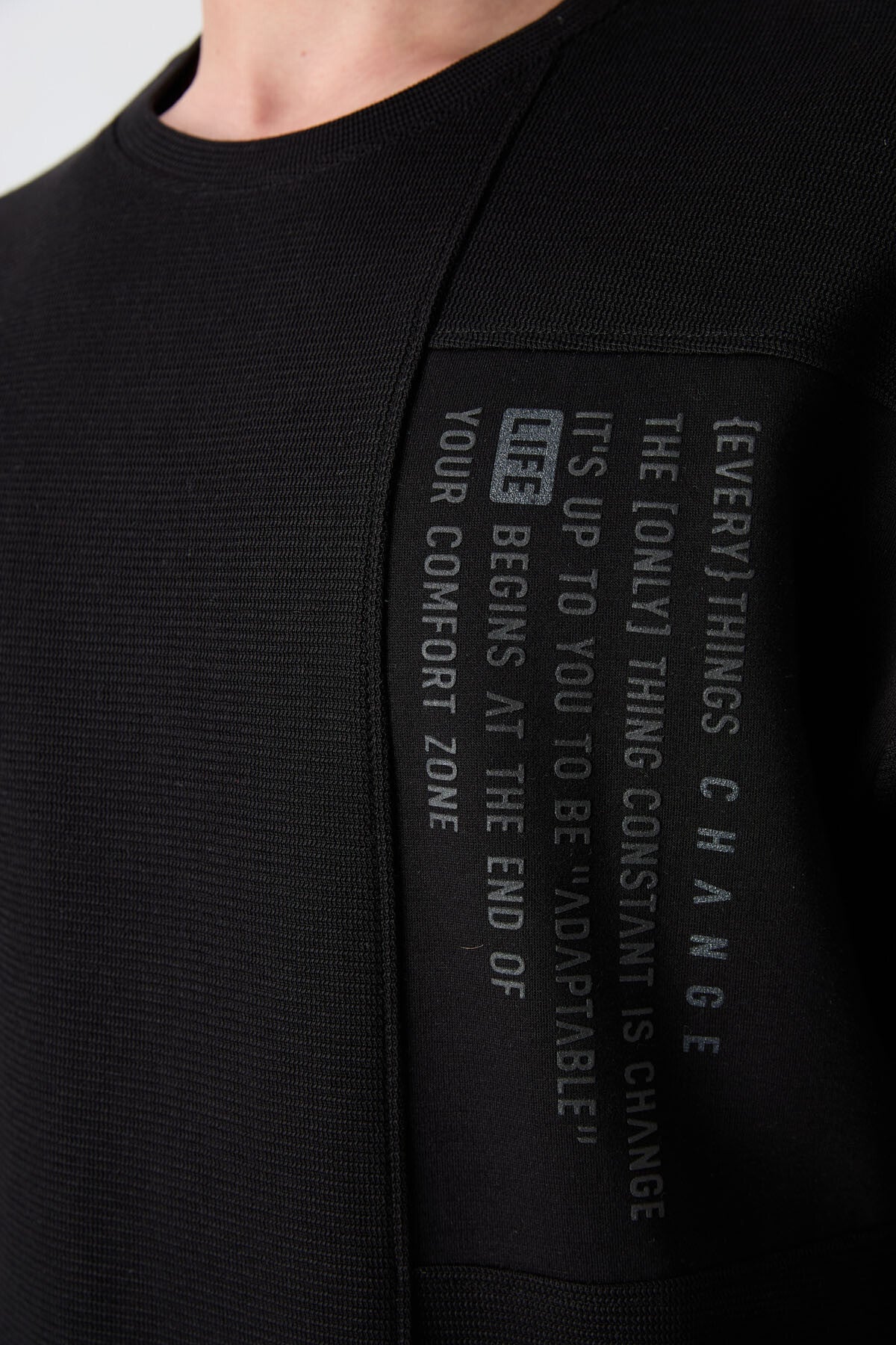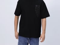 Black Cotton Thick Textured Surface Oversize Fit Printed Men's T-Shirt - 88338