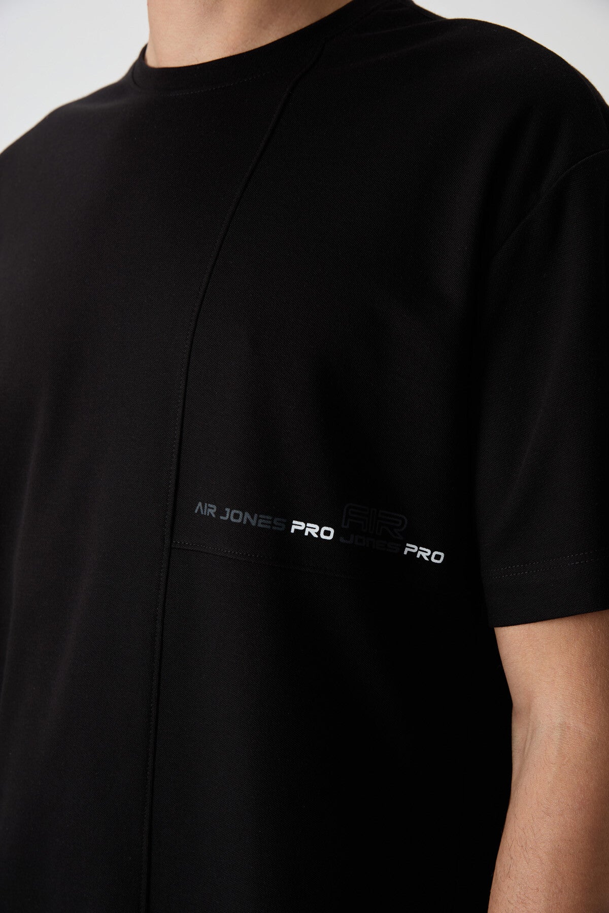 Black Cotton Thick Textured Surface Oversize Fit Printed Men's T-Shirt - 88370