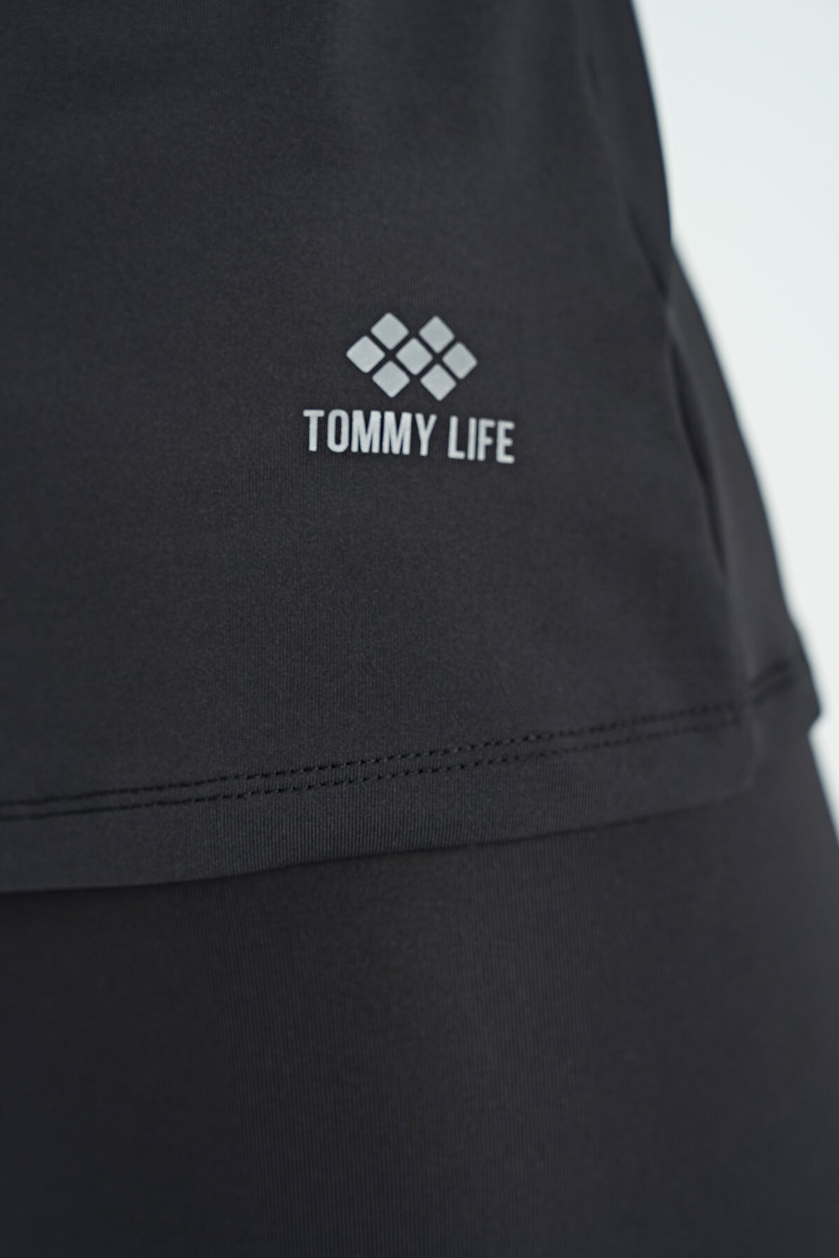 Black Double Strap Back Detailed Standard Fit Women's Sports Singlet - 97258