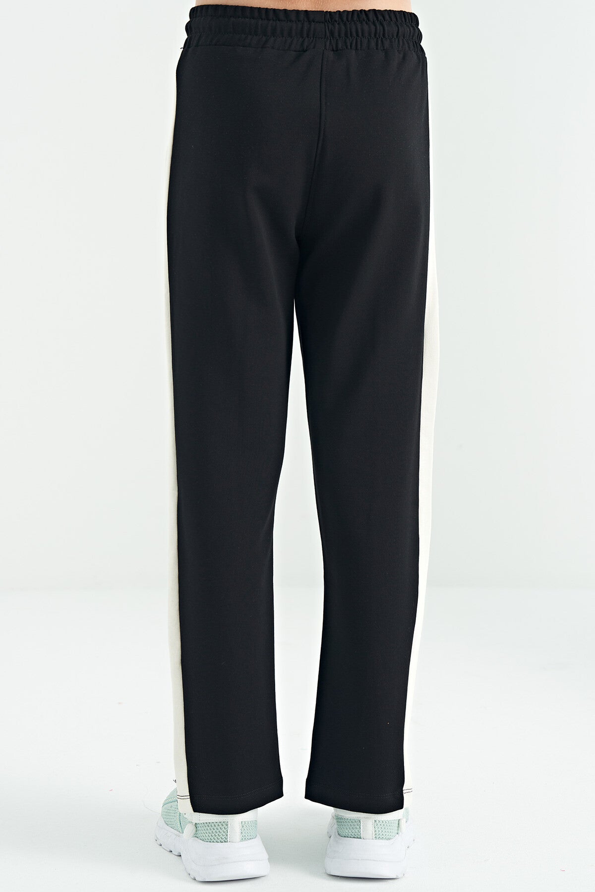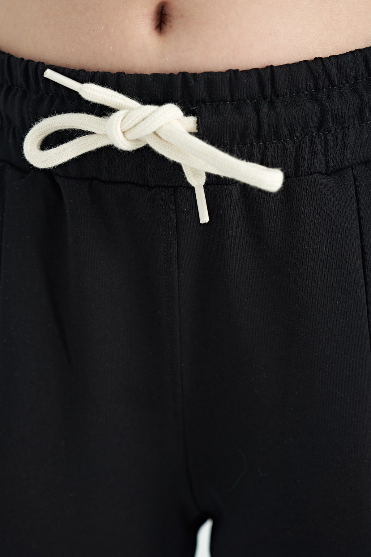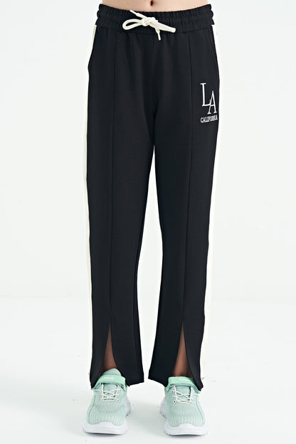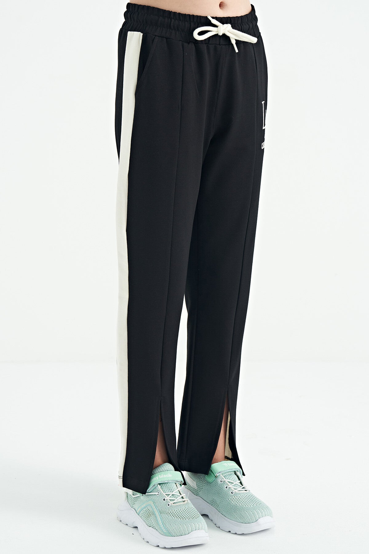 Black Embroidered Detailed Laced Relax Fit Girls Tracksuit Bottom - 75121