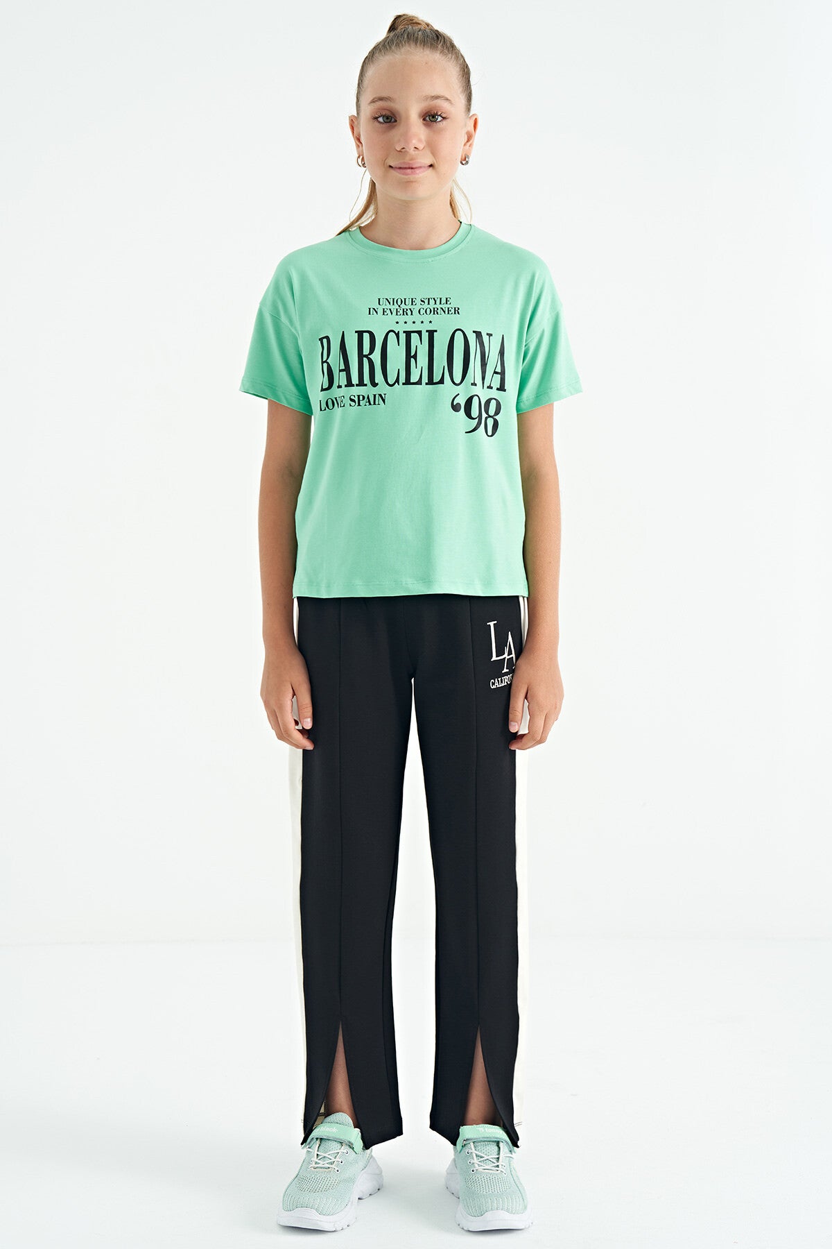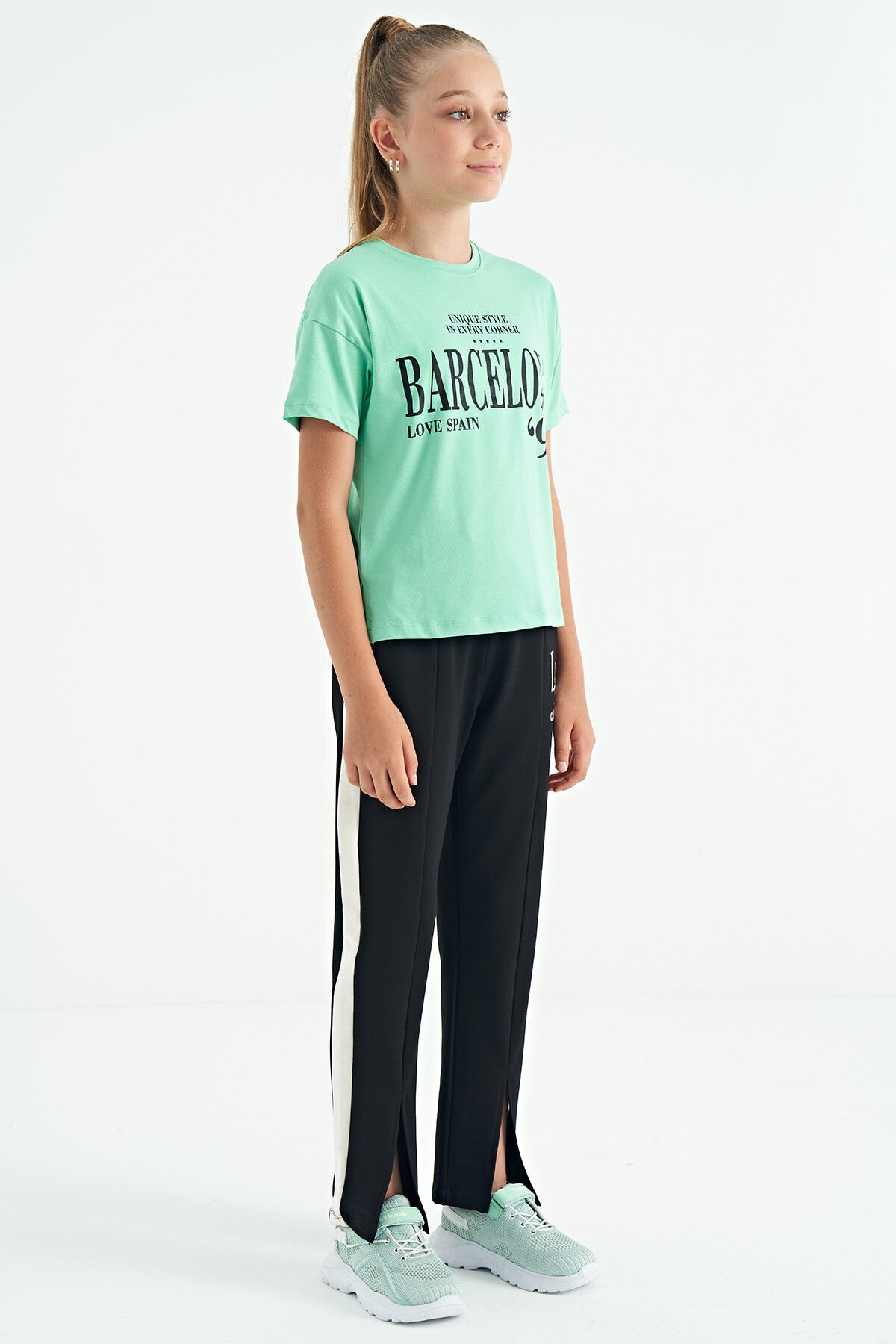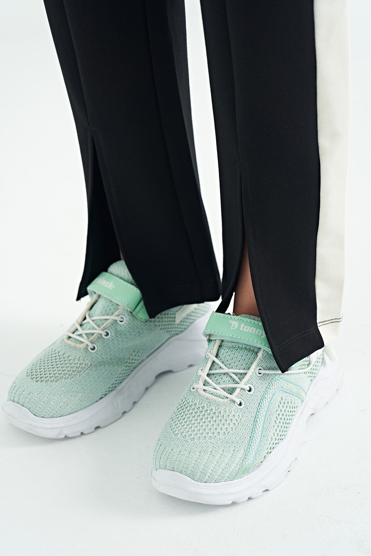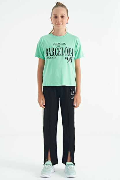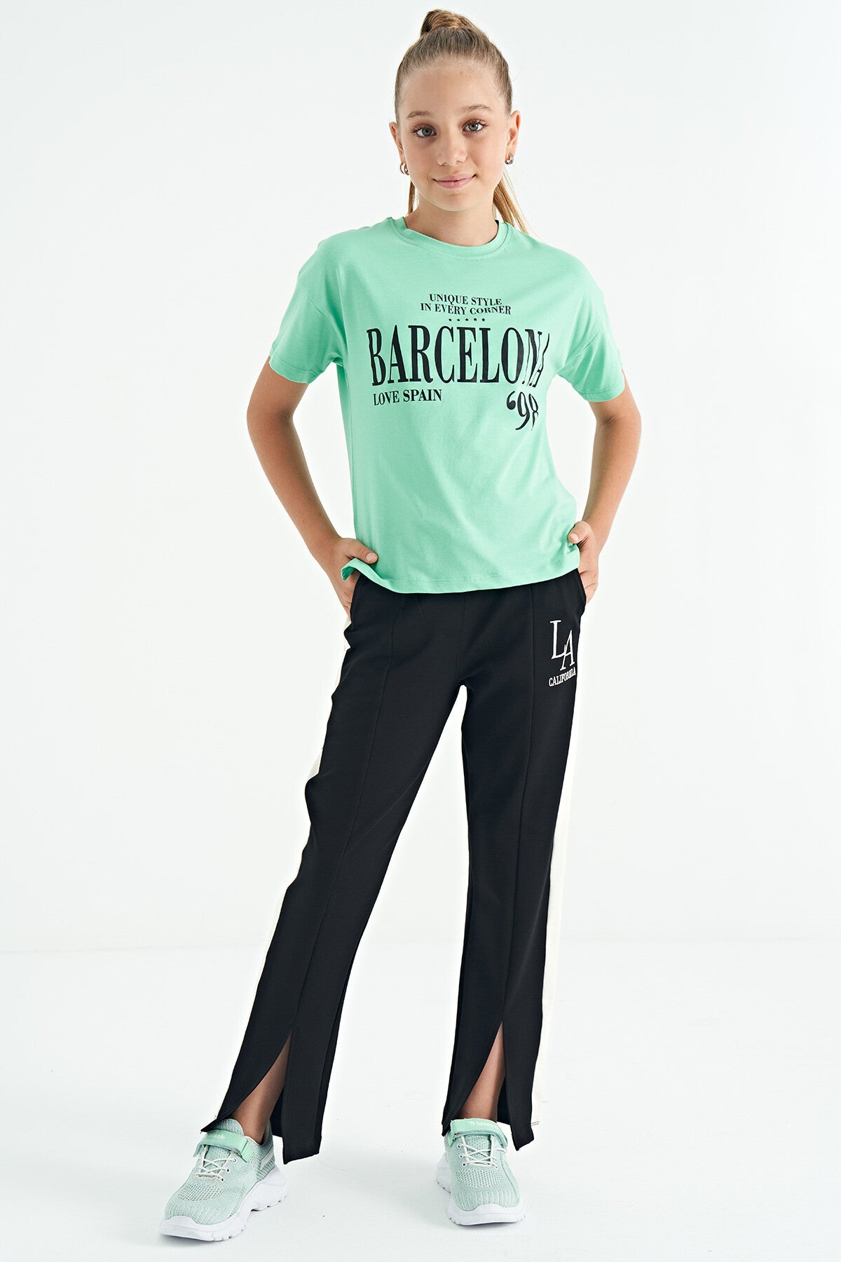 Black Embroidered Detailed Laced Relax Fit Girls Tracksuit Bottom - 75121