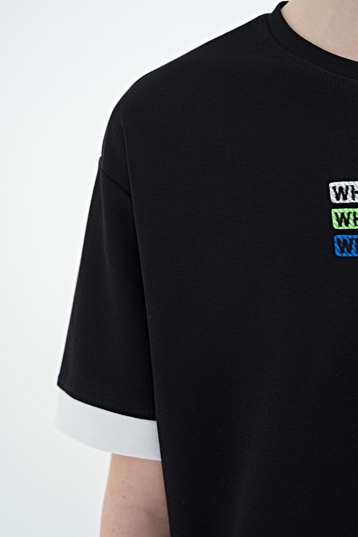 Black Embroidered O Collar Oversize Boys T-Shirt - 11146