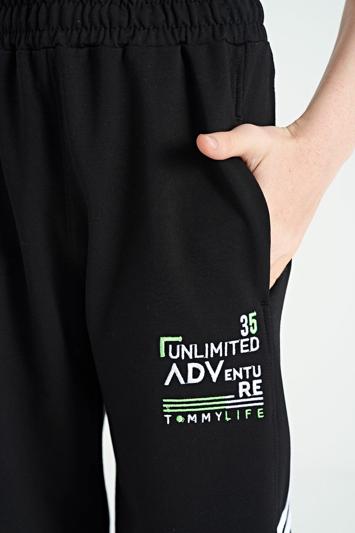 Black Embroidered Pattern Laced Standard Fit Boys Shorts - 11124