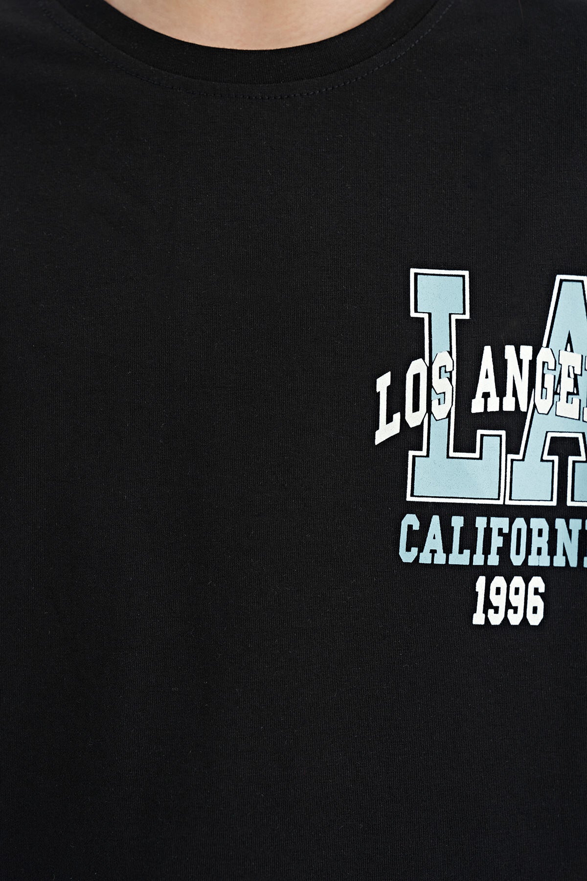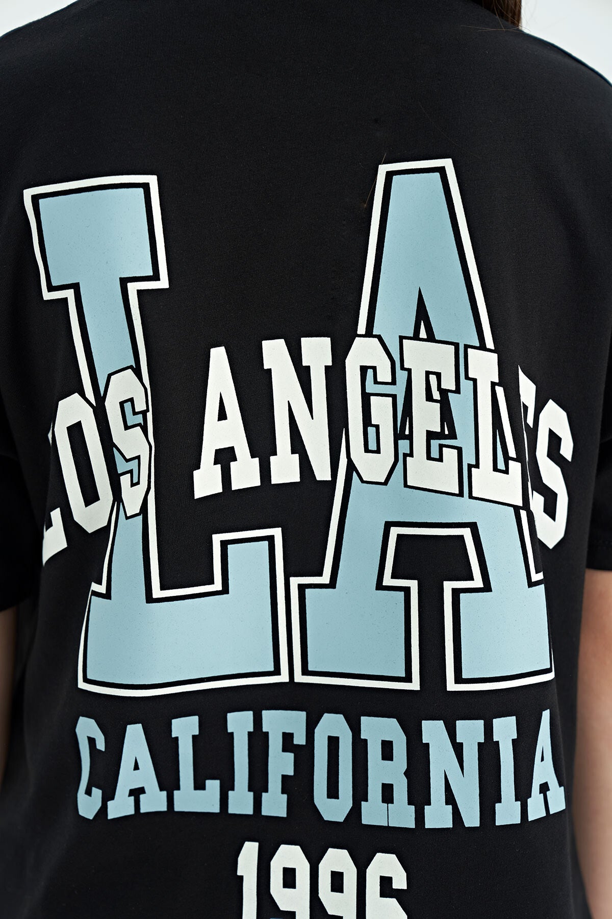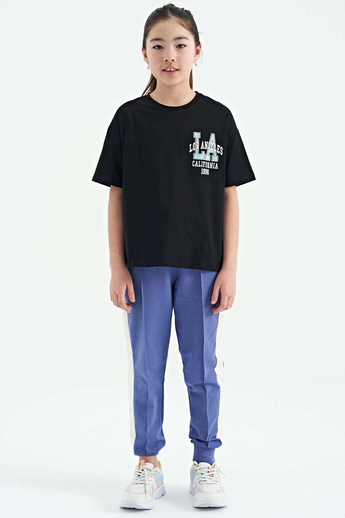 Black Front and Back Printed O Collar Oversize Short Sleeve Girls T-Shirt - 75127