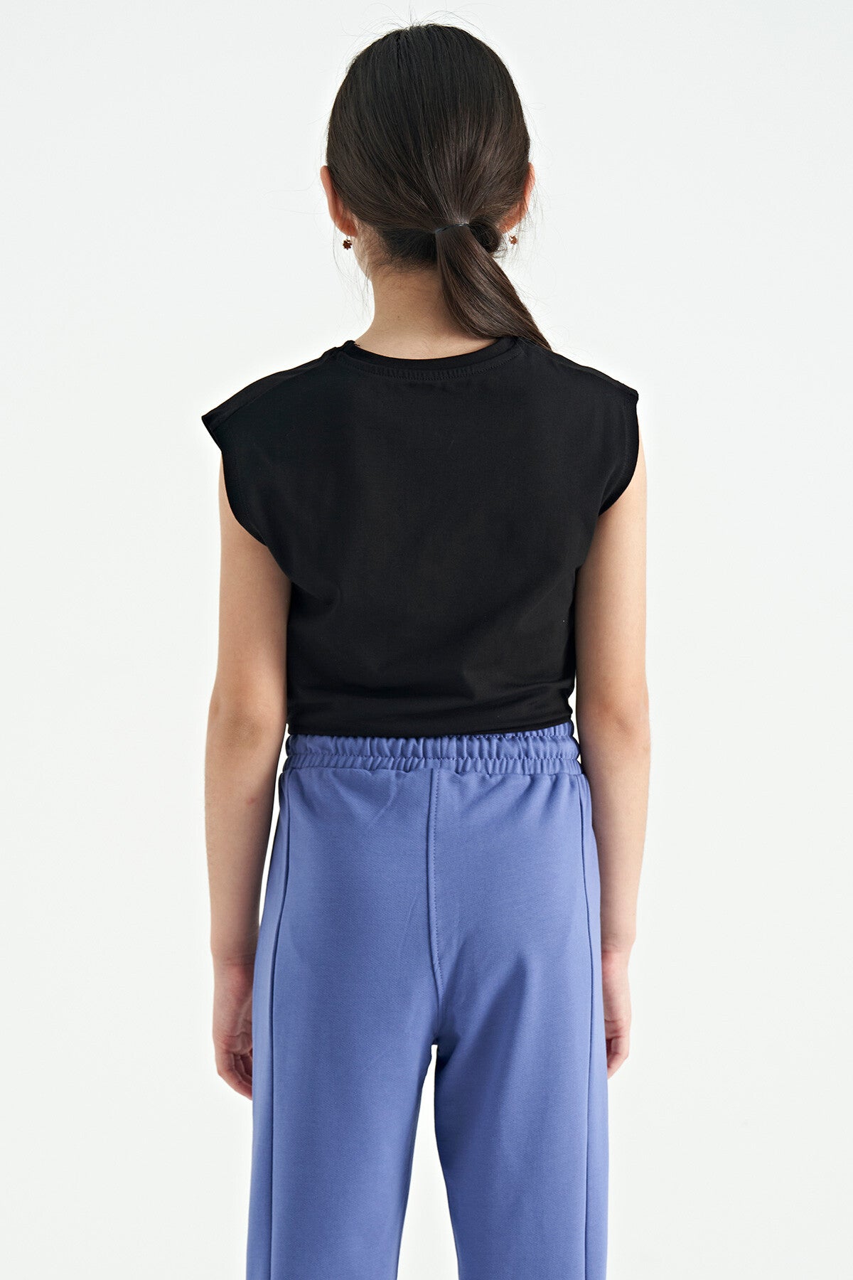Black Heart Print Front Knot Detailed Comfortable Fit Girls' T-Shirt - 75114
