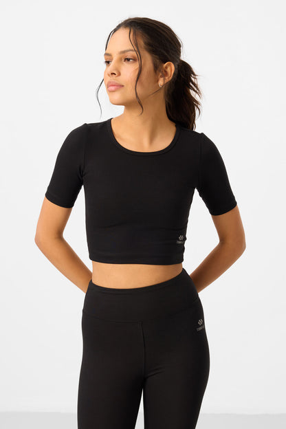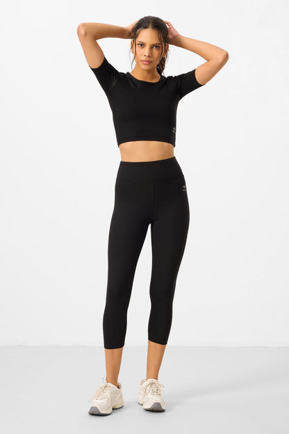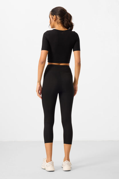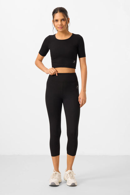 Black High Waist Capri-Crop T-Shirt Slim Fit Women's Tights Set - 95285