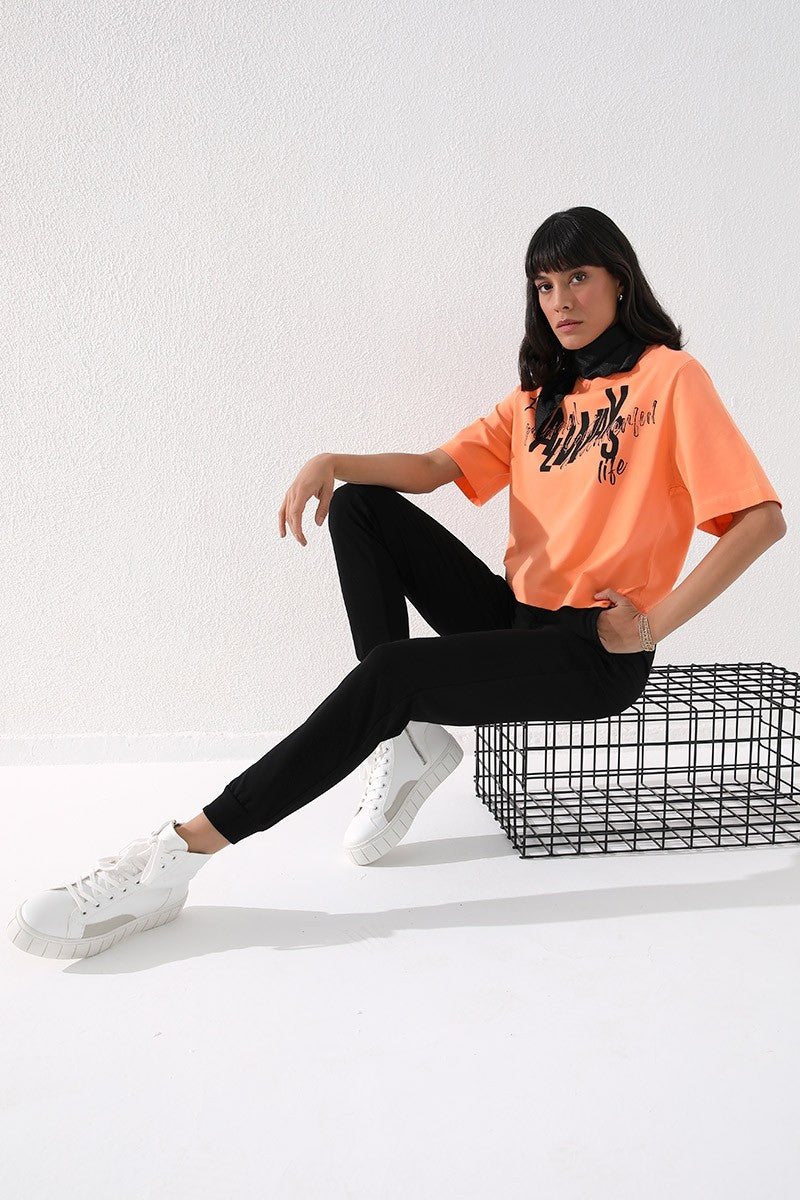 Black High Waist Jogger Comfort Fit Cuffed Women's Tracksuit Bottom - 94561