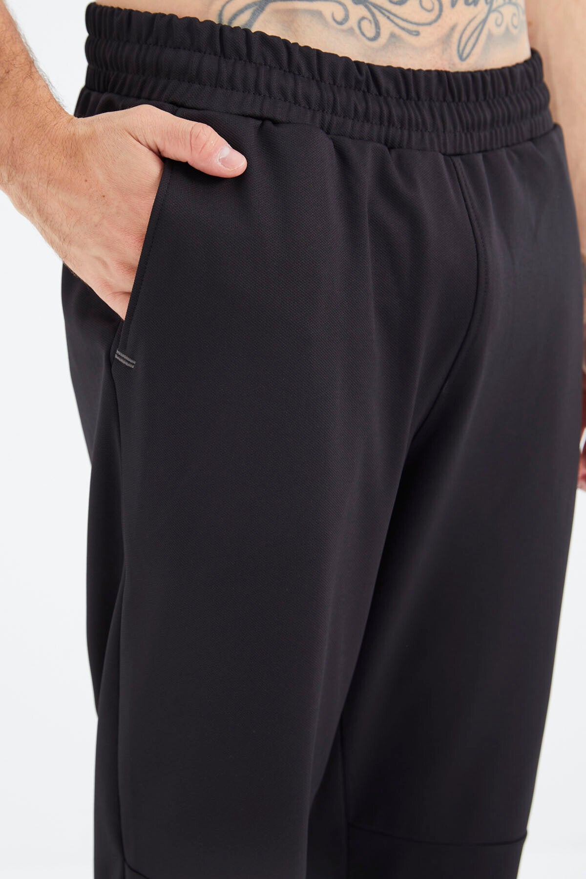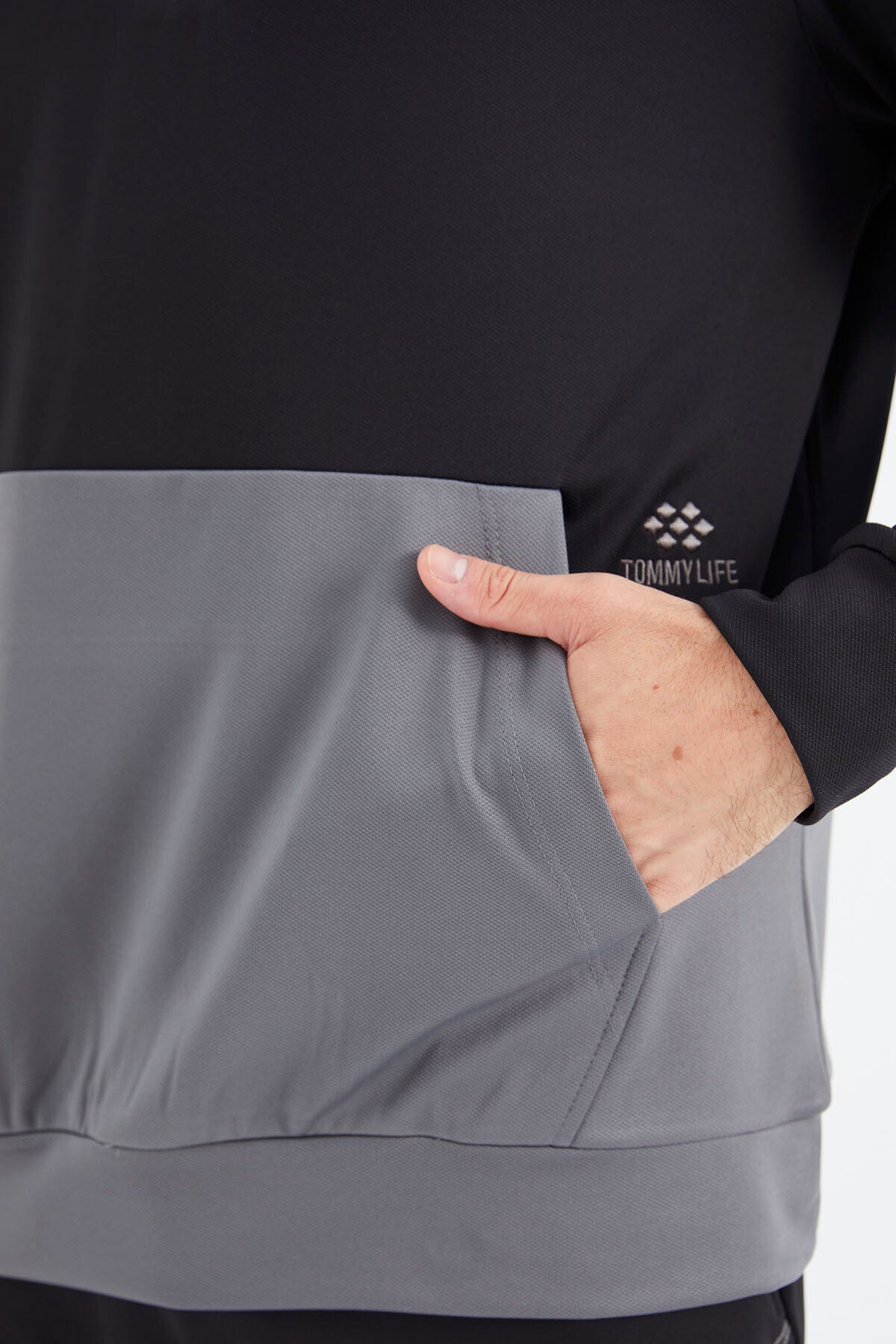 Black Hooded Half-Zip Striped Detailed Men's Tracksuit Set - 85214
