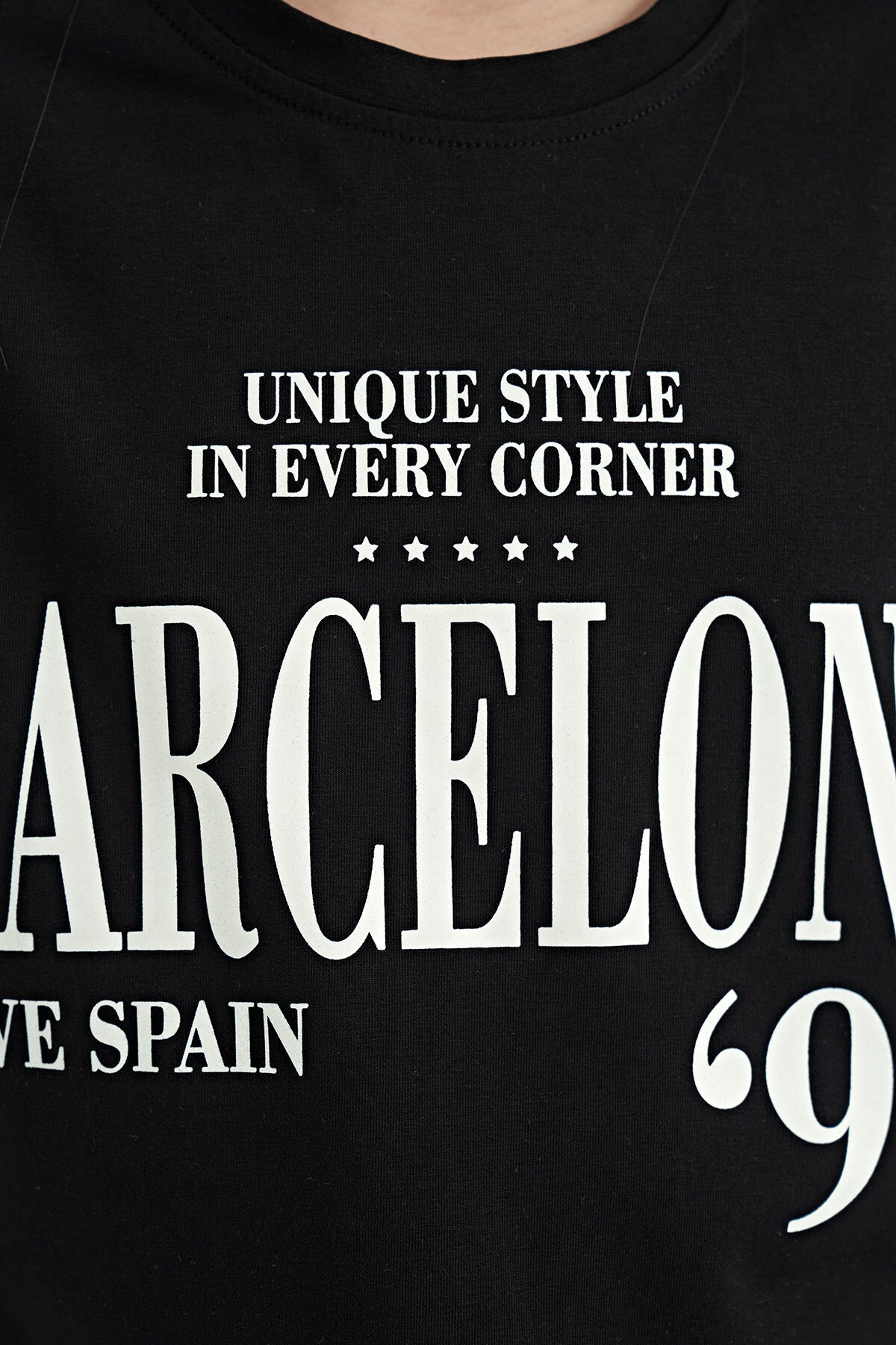Black O Collar Printed Low Shoulder Oversize Girl's T-Shirt - 75115