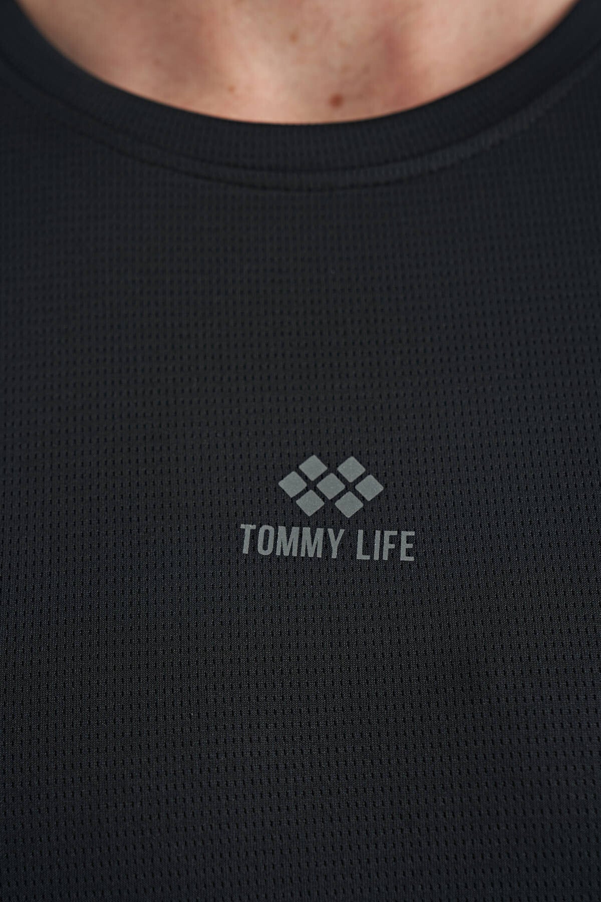 Black O-collar standard active sports men's T-shirt with a patterned collar - 88254