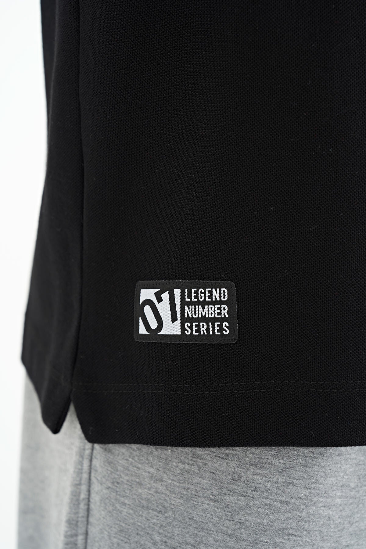 Black Pocket Detailed Printed Standard Fit Polo Collar Men's T-Shirt - 88241